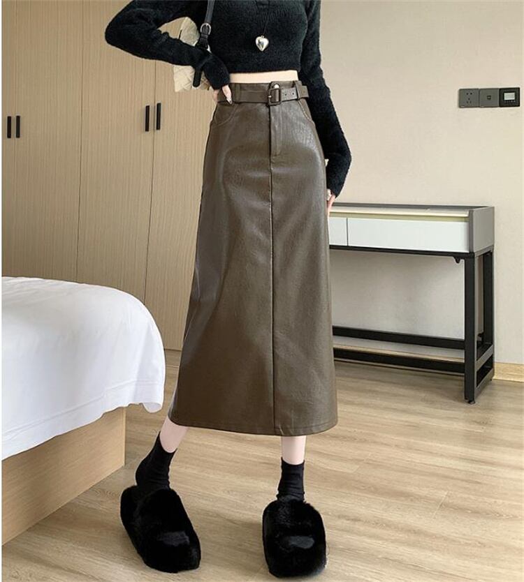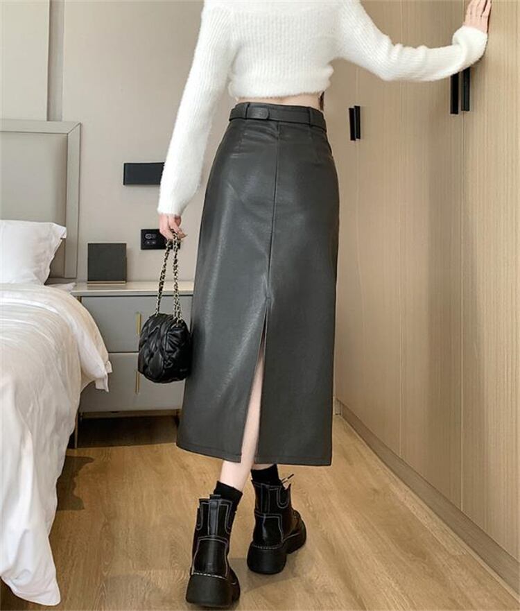 カラーバリエーション豊富 PUスカート スプリット ハイウエスト スカート ロング 秋冬 セクシー A字スカート