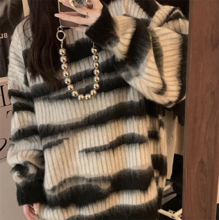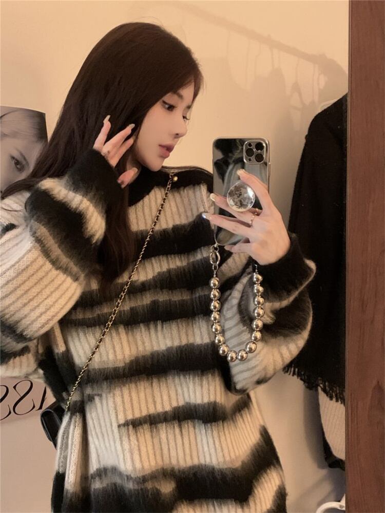 トレンド ラウンドネック スリム セーター ボーダー ニットトップス
