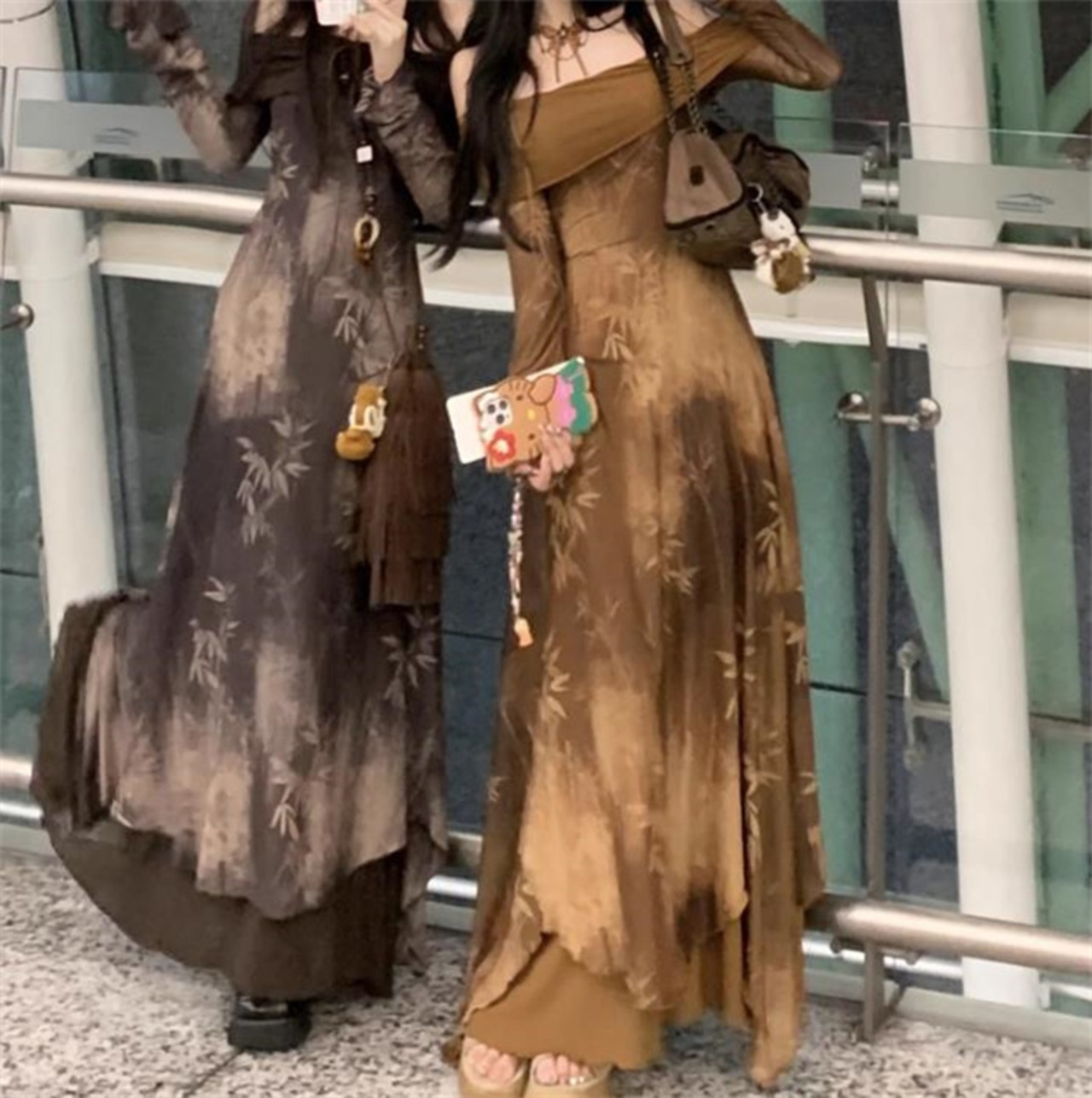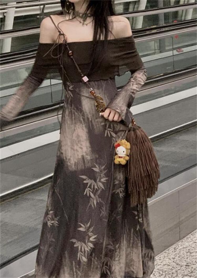 プリント エレガント ロングスカート ワンピース ドレス 洋服 レディースファッション