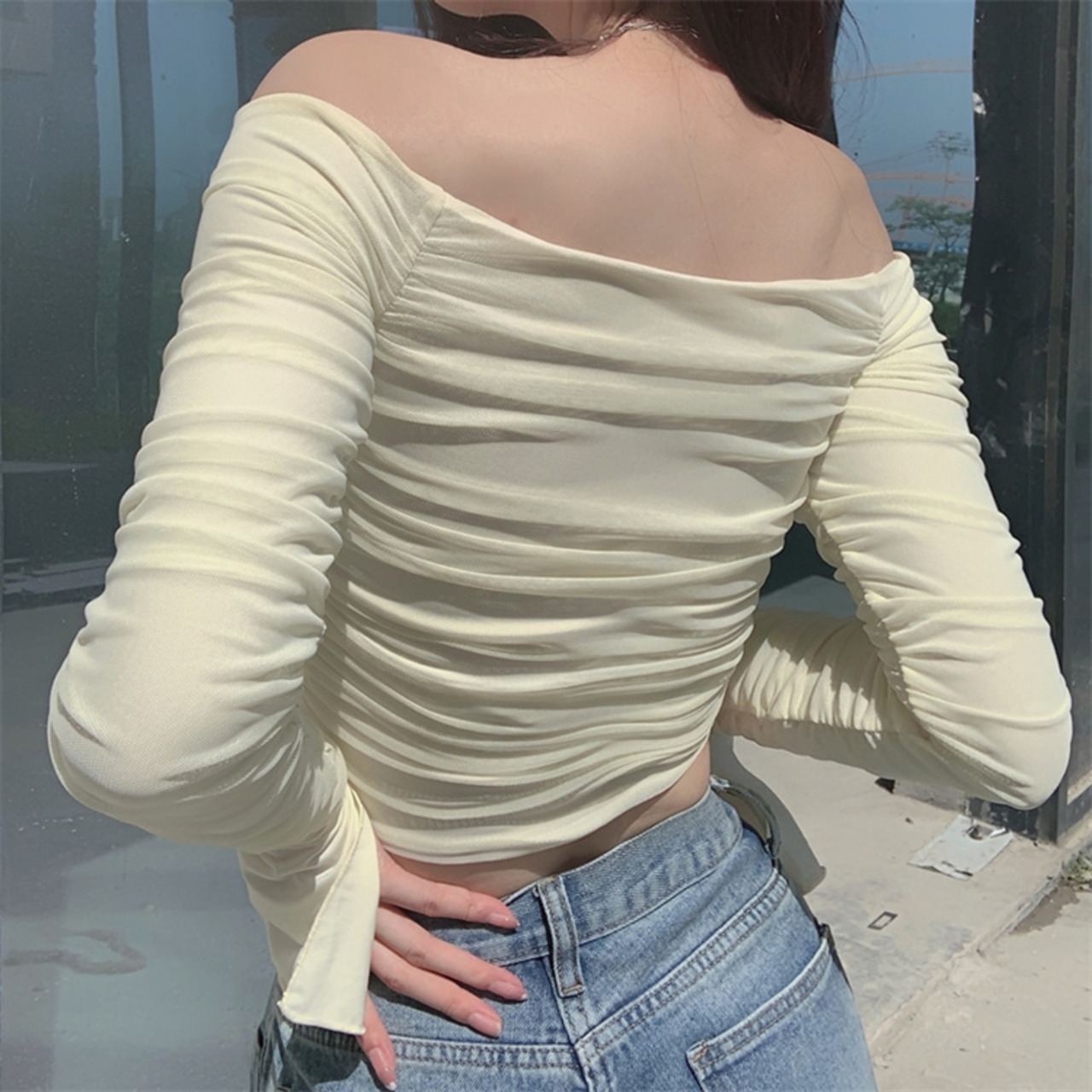 ギャル風 快適 レーヨン 夏 一言の肩 長袖 Tシャツ 早秋 上着
