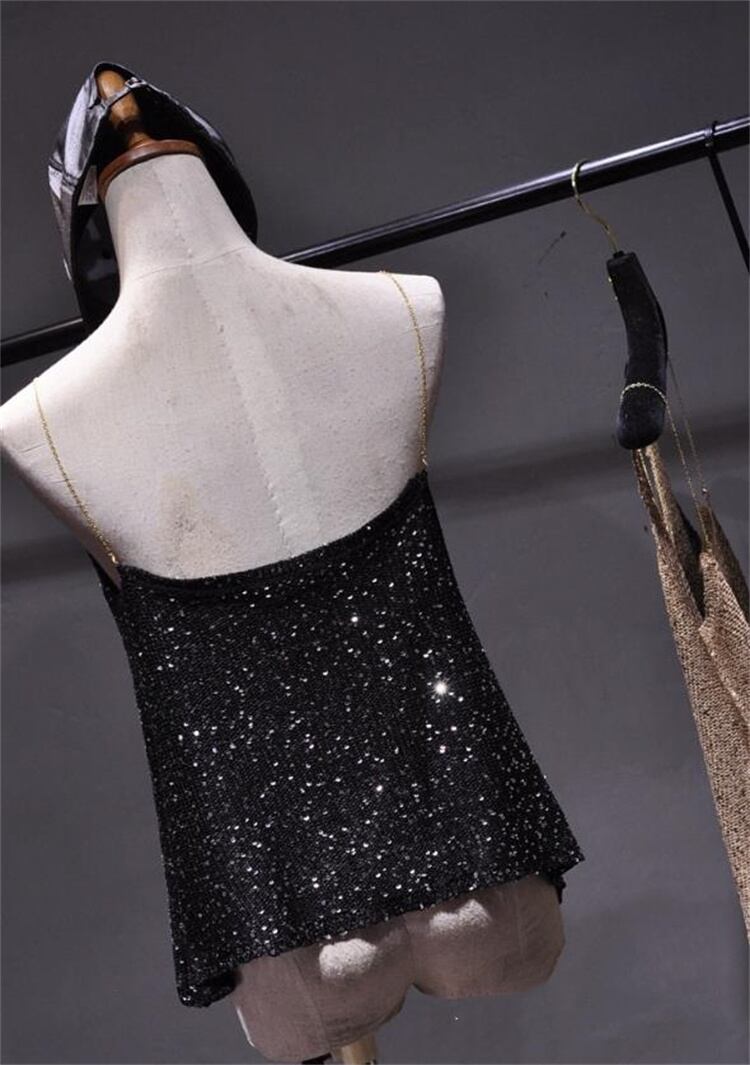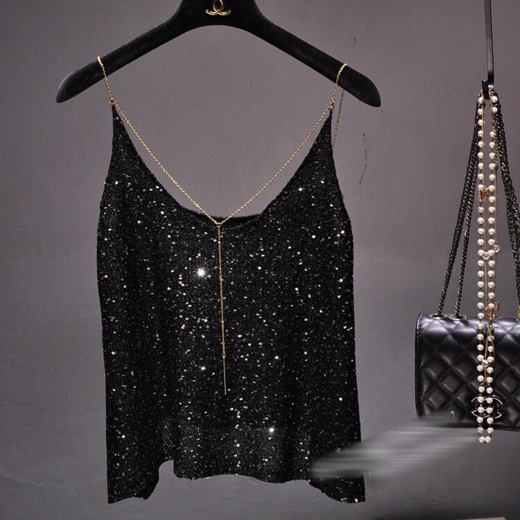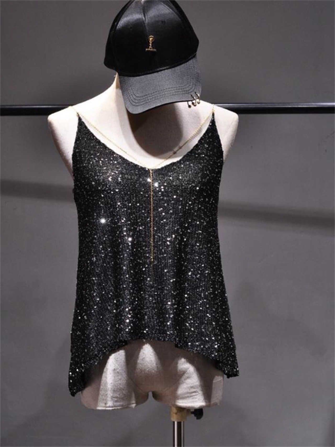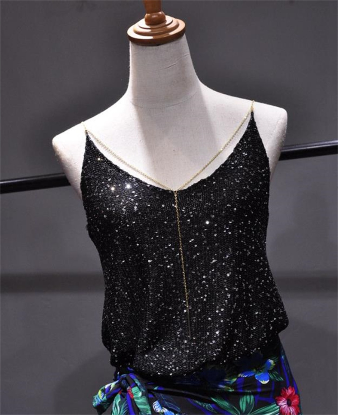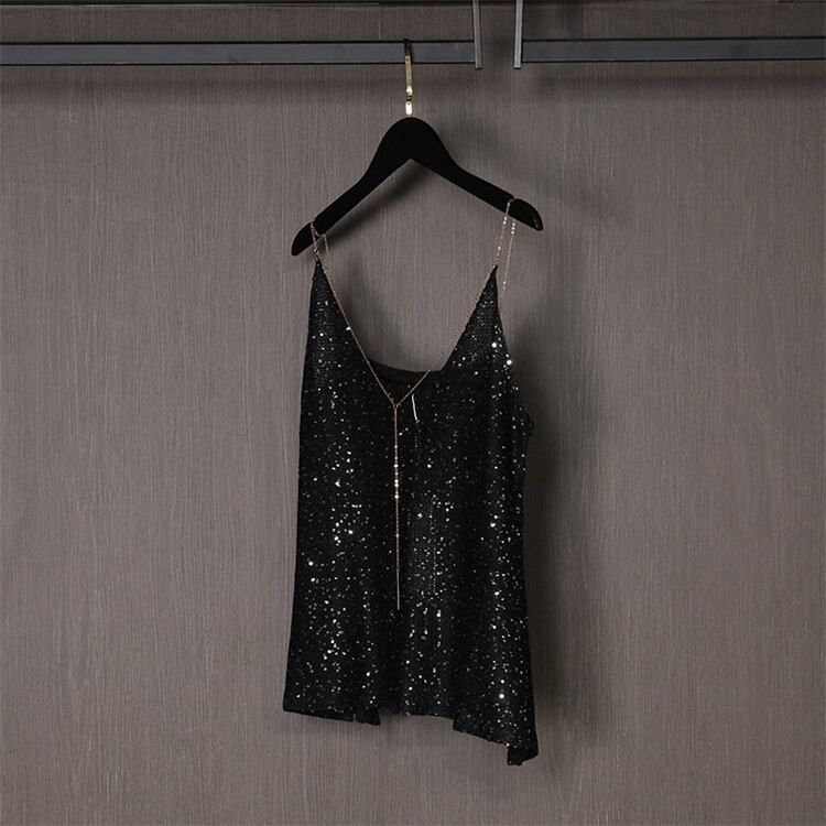 キャミソール 夏 ショルダーストラップ ベアトップ スパンコール Vネック サスペンダー 洋服 レディースファッション