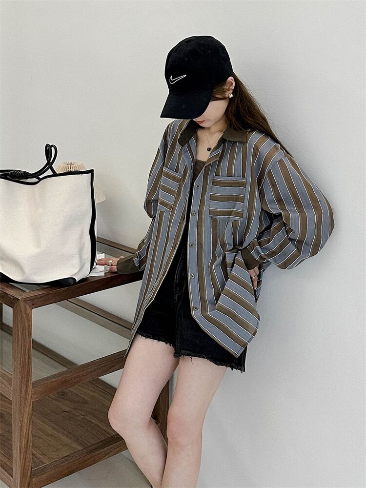 シャツ ブラウス ストリート レディース ストライプ