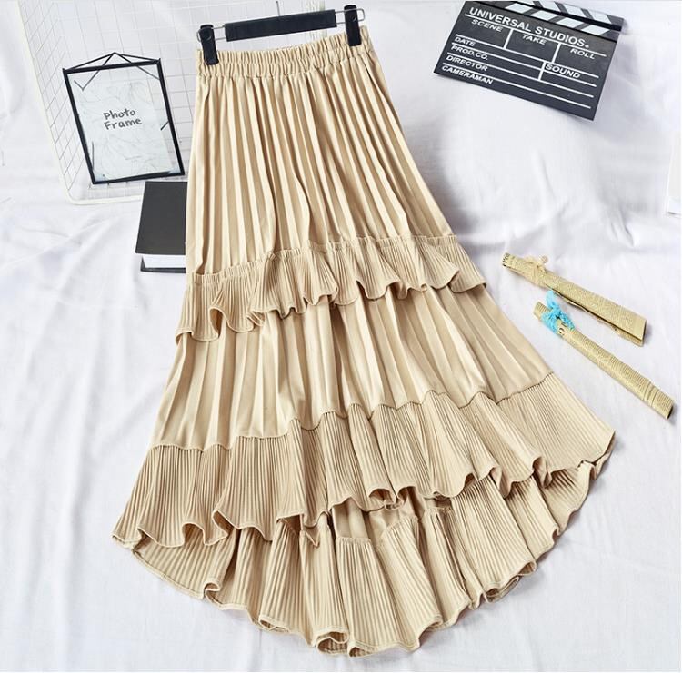 ハイウエスト プリーツスカート ロングスカートゴールドベルベット スカート 洋服 レディースファッション