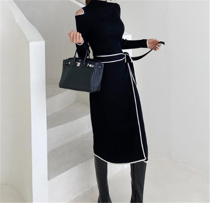 ワンピース エレガント タイト デザインセンス 暖かい シンプル 上品映え オープンショルダー