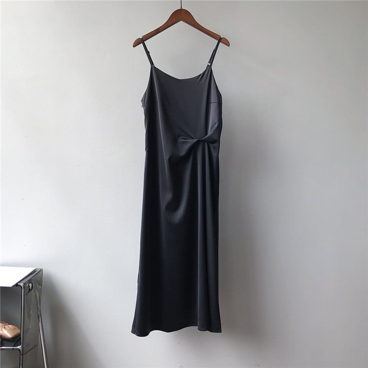 フレンチ おしゃれな キャミソールワンピース ハイウエスト夏 サテン 洋服 レディースファッション