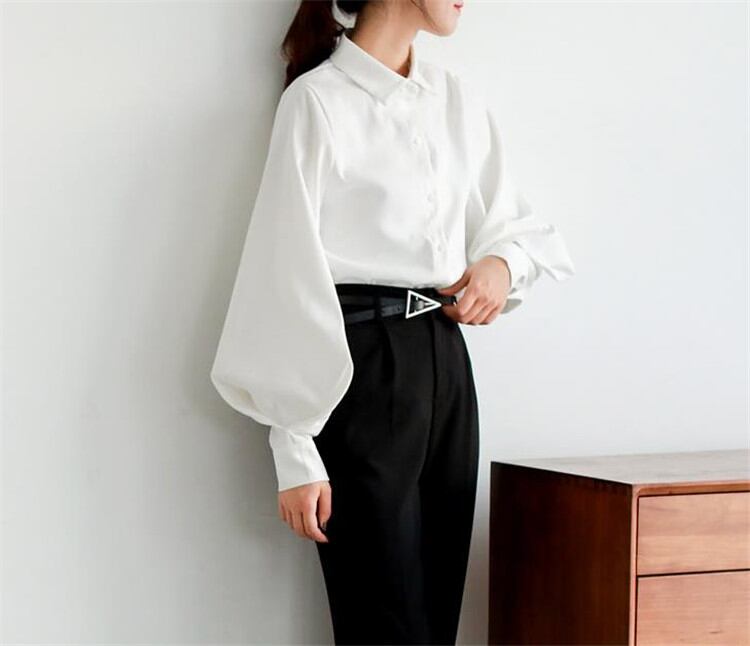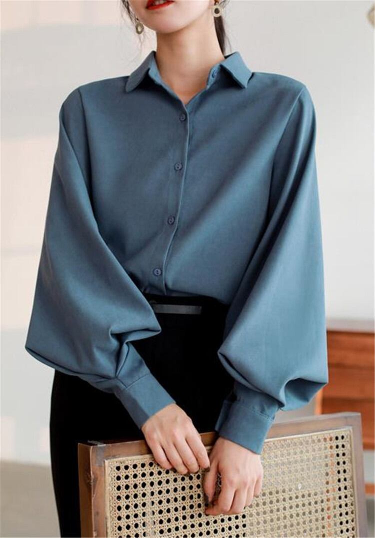 ラペル 単体ボタン ランタンスリーブ シャツ トップス ゆったり