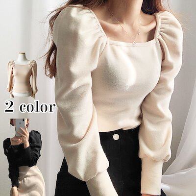 長袖トップス おしゃれな 長袖 ニット スクエアネック レトロ