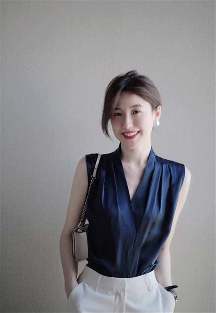 vネック シフォンシャツ 首掛け上着 ベスト 夏 袖なし ノースリーブ 薄手 トレンド 洋服 レディースファッション