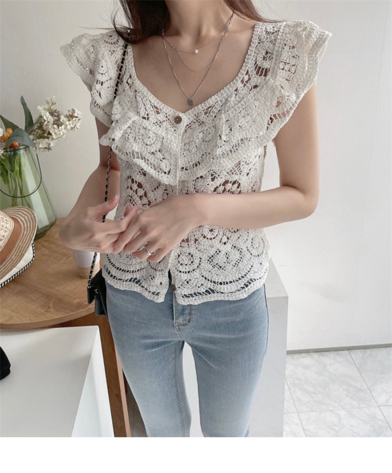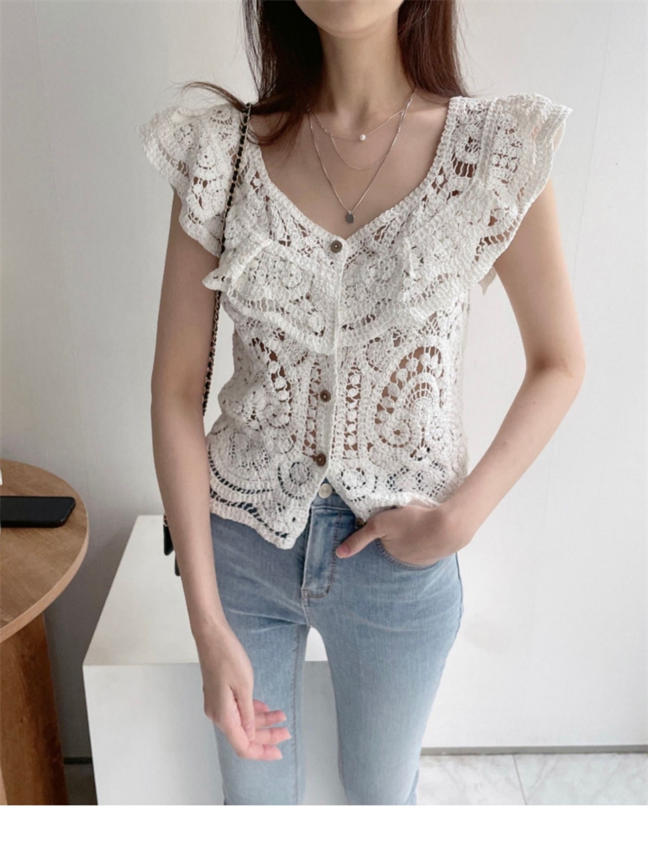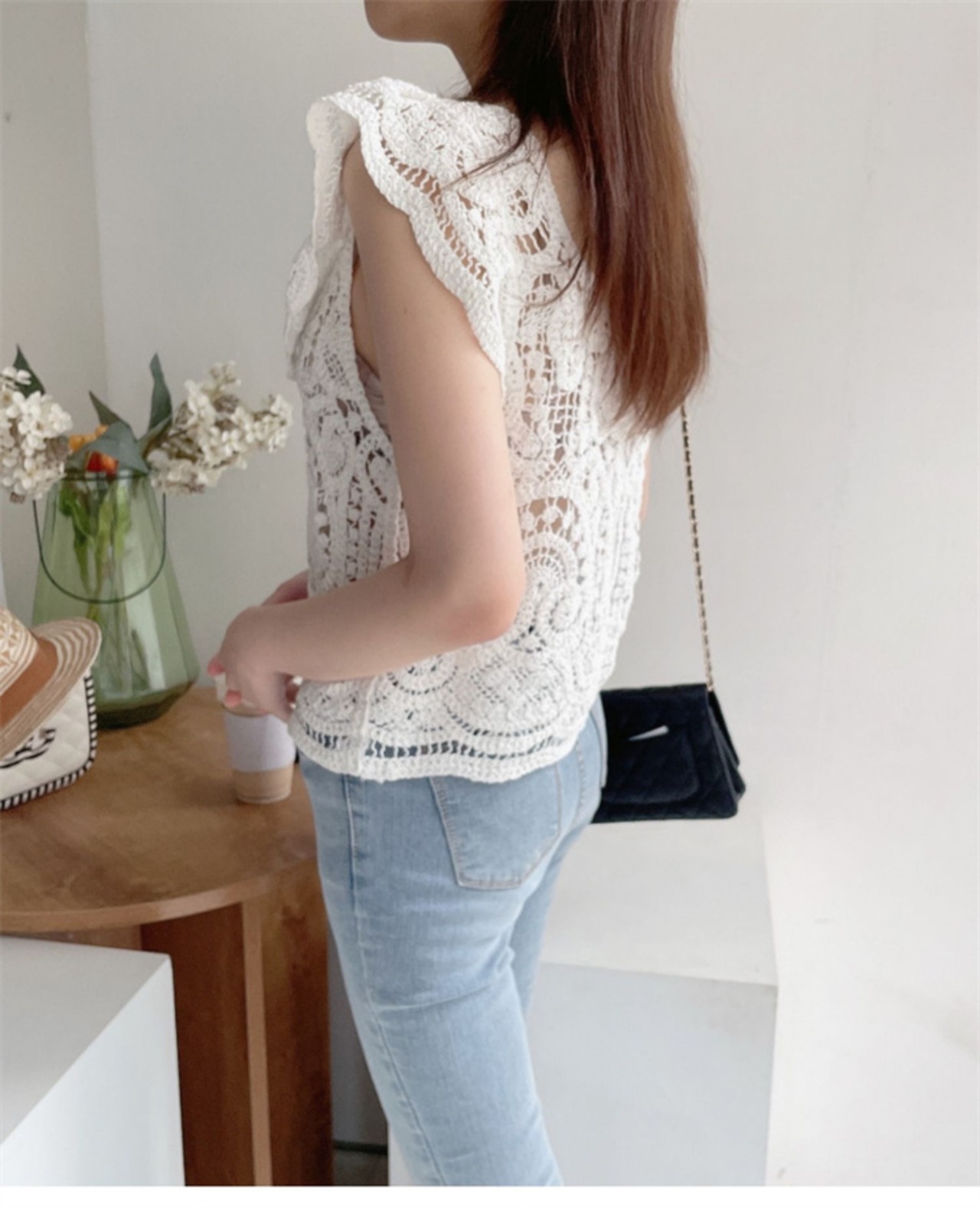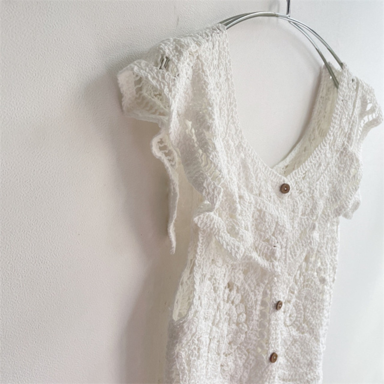 フリル ニットベスト 袖なし トップス スリム 上着 シック ステンシル ベスト