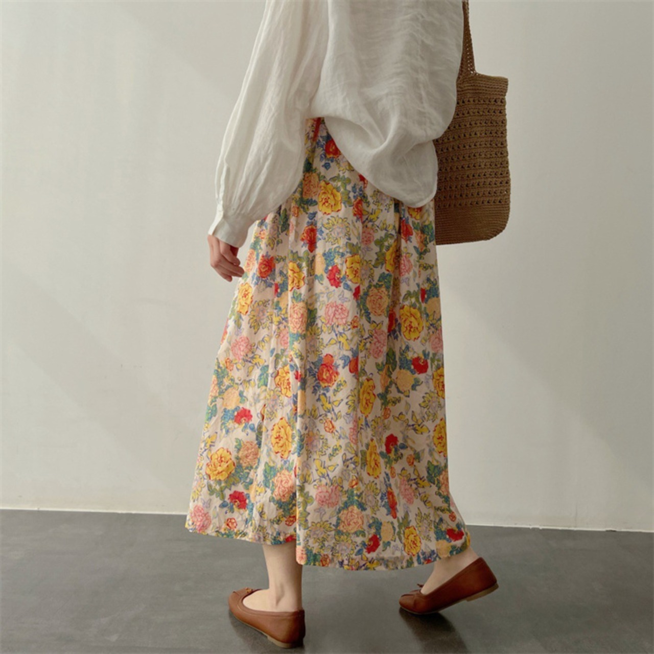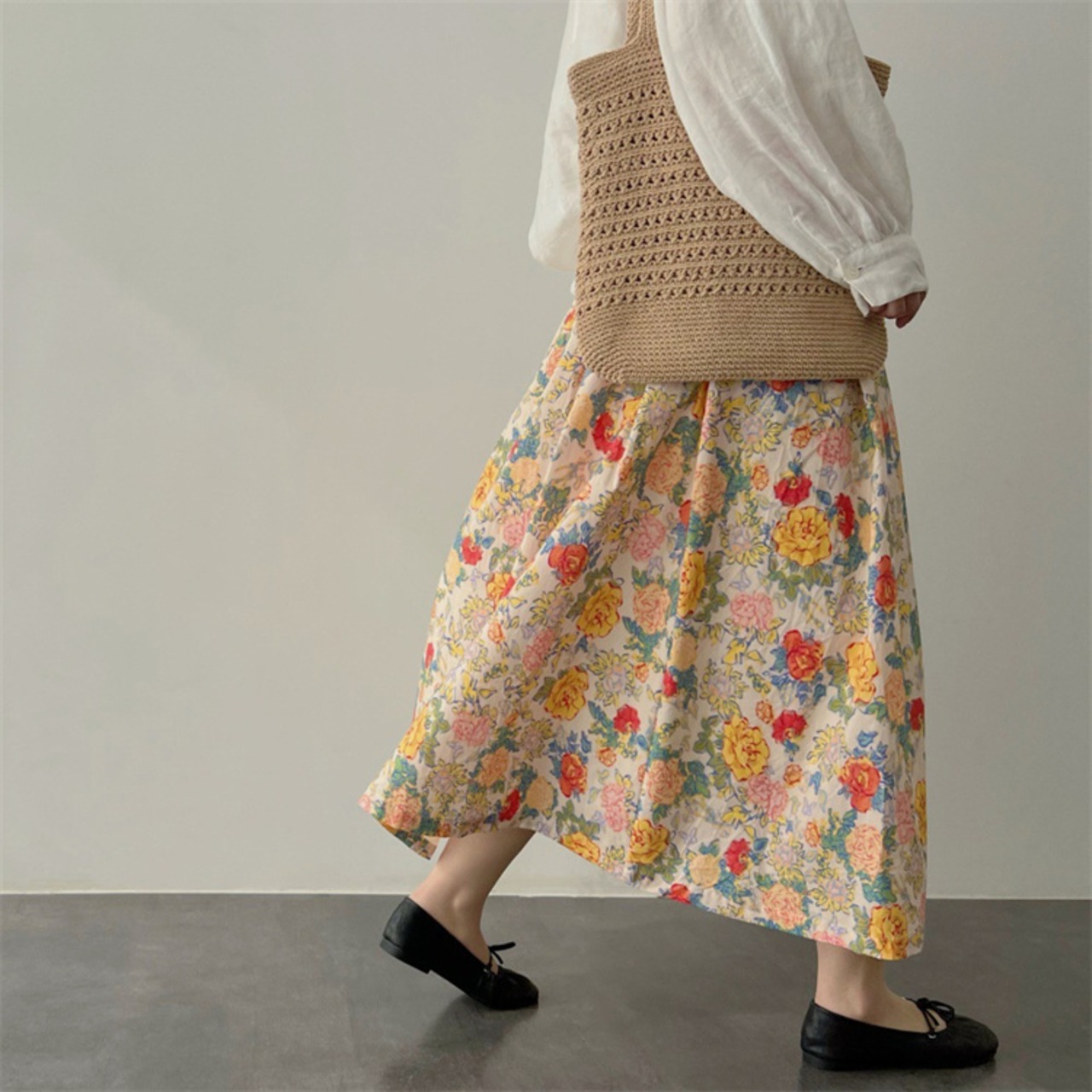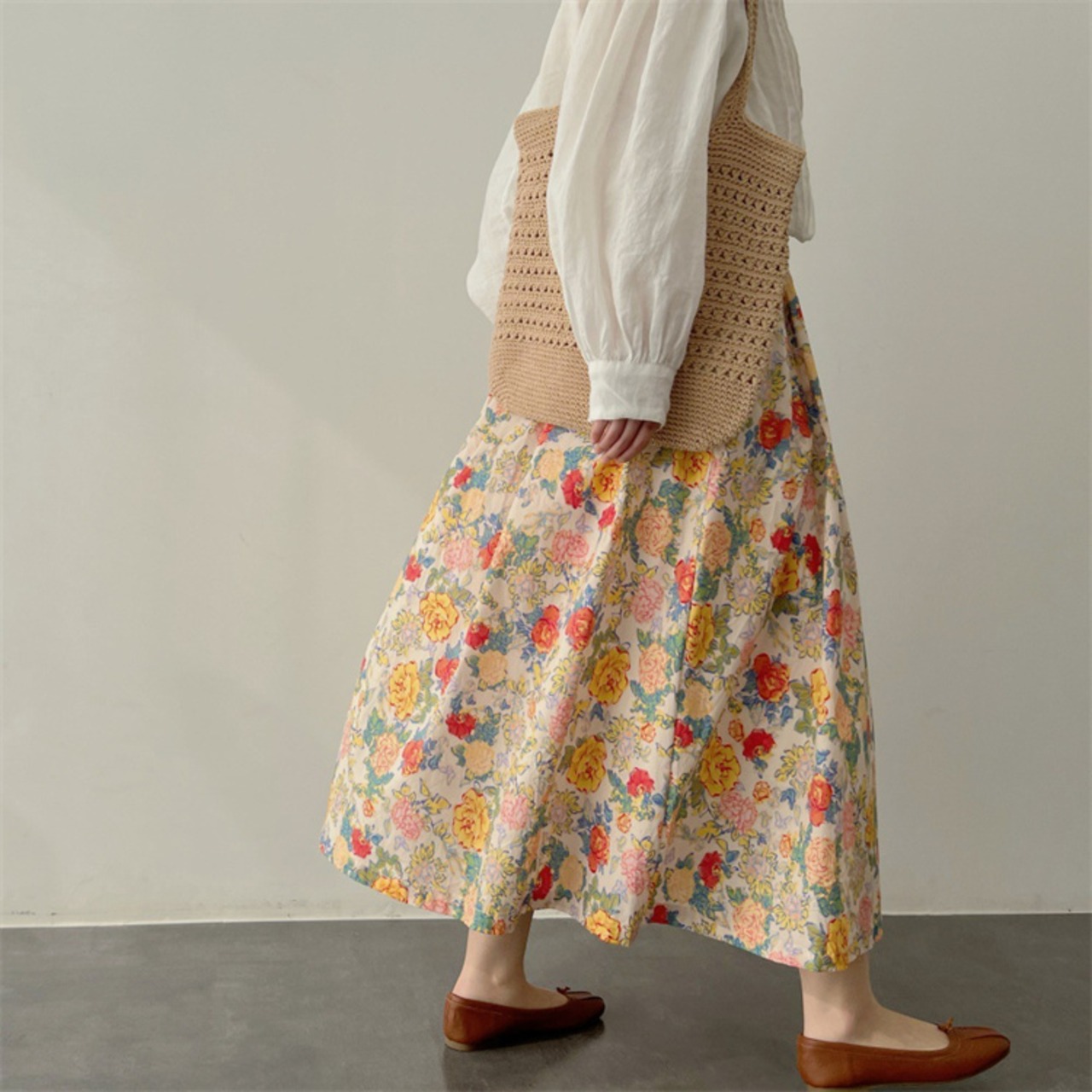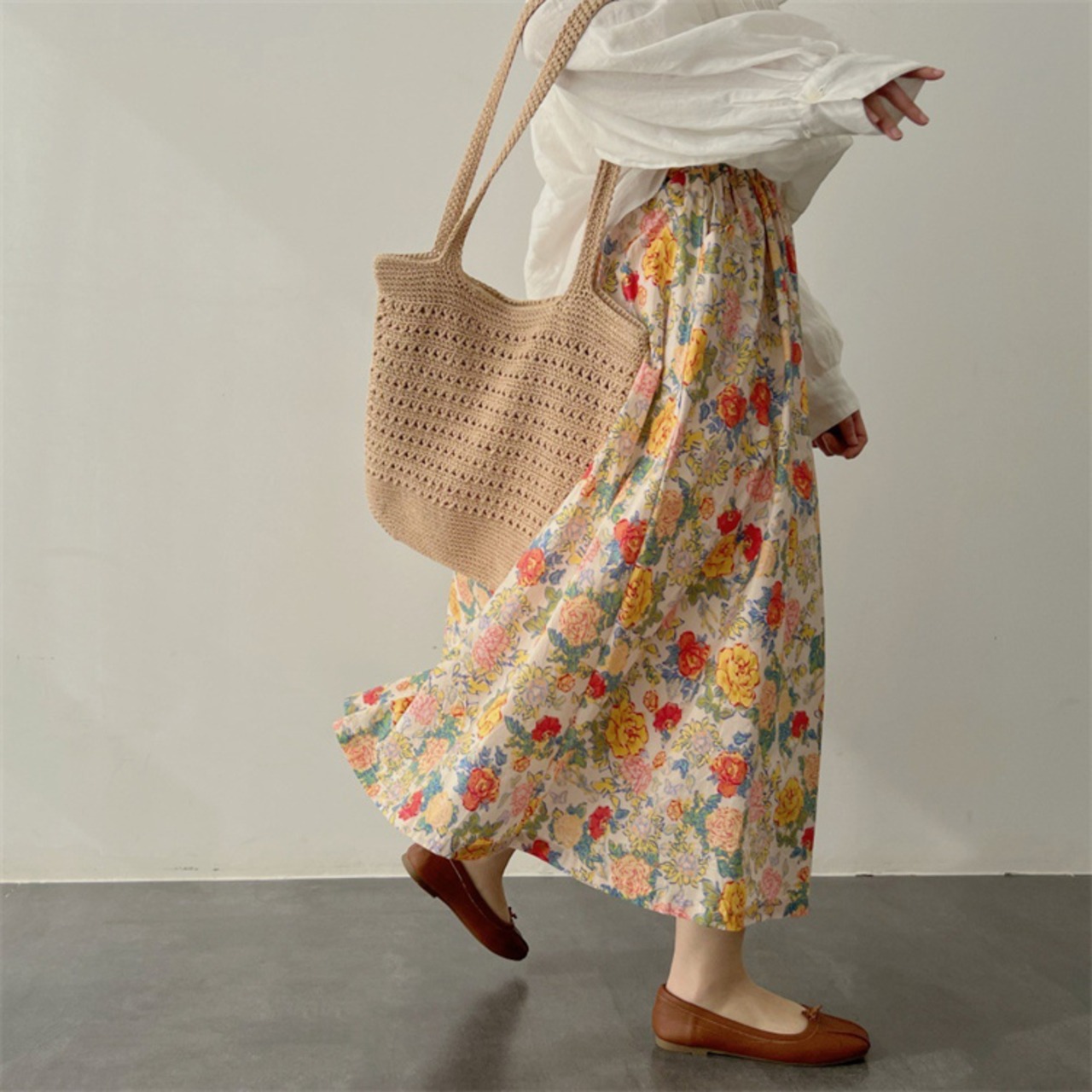 ハイウエスト ミディアムスカート プリント Aラインスカート 洋服 レディースファッション