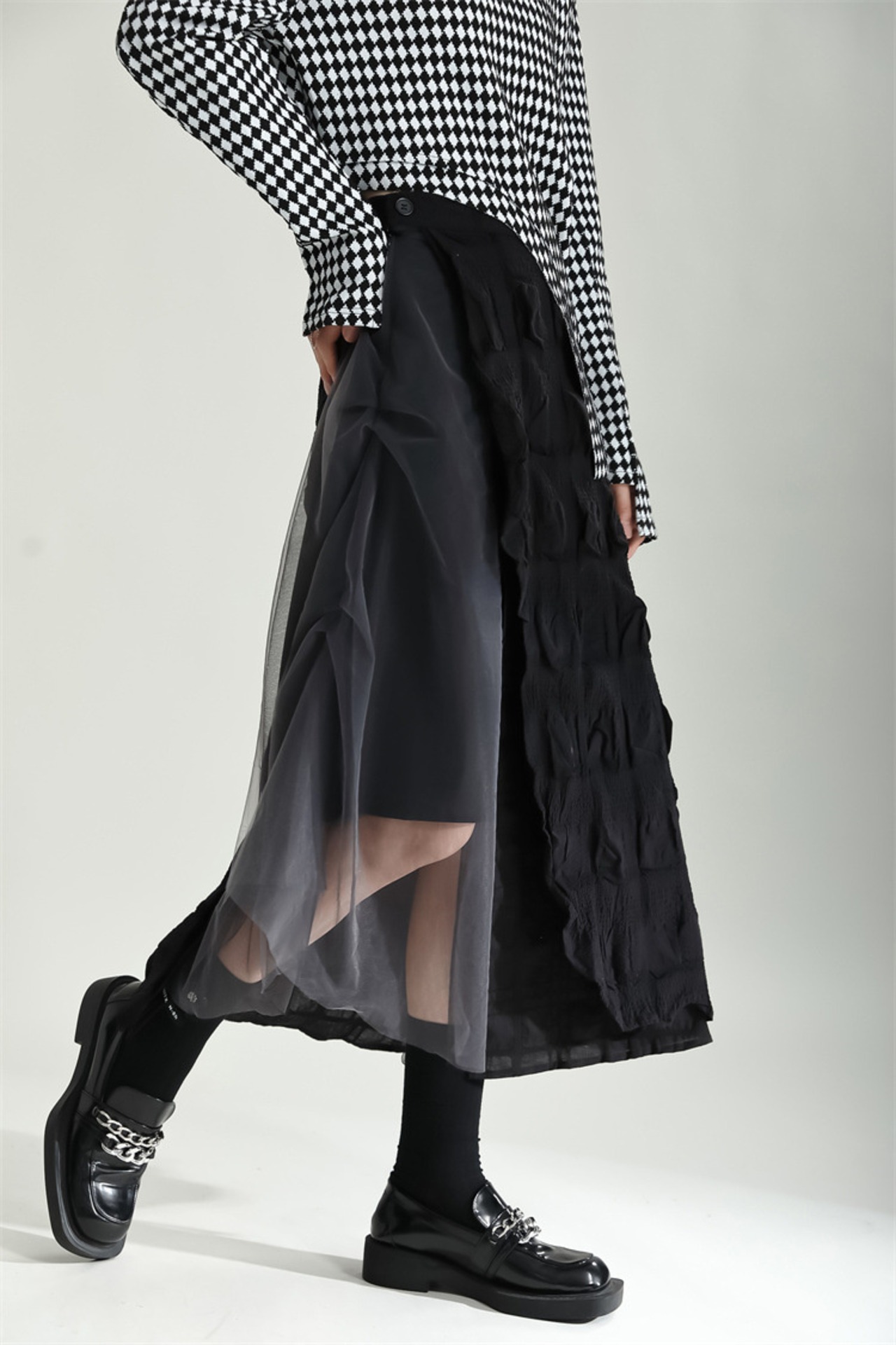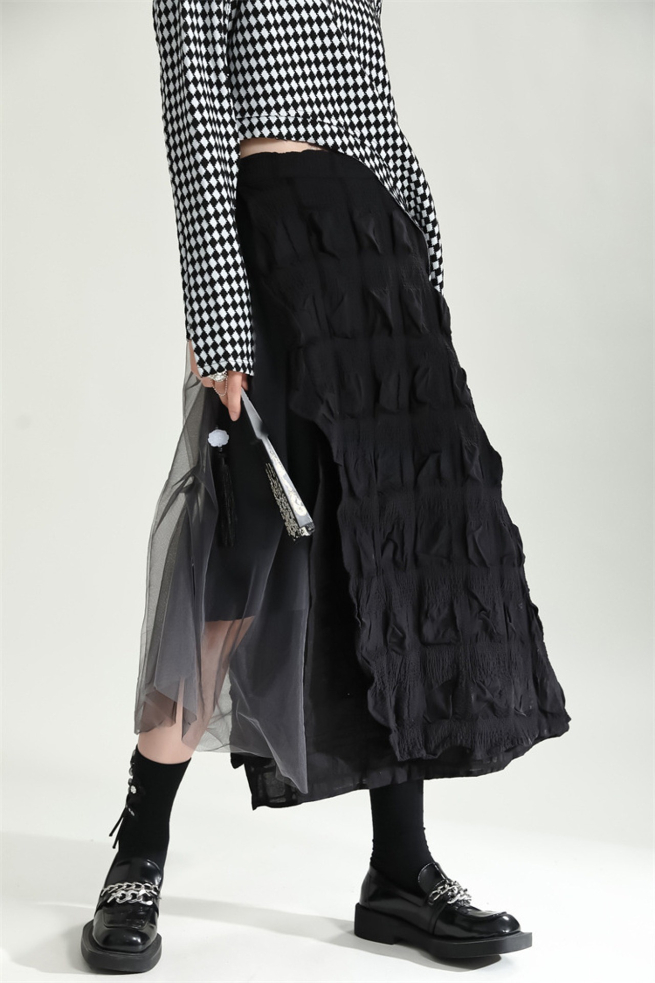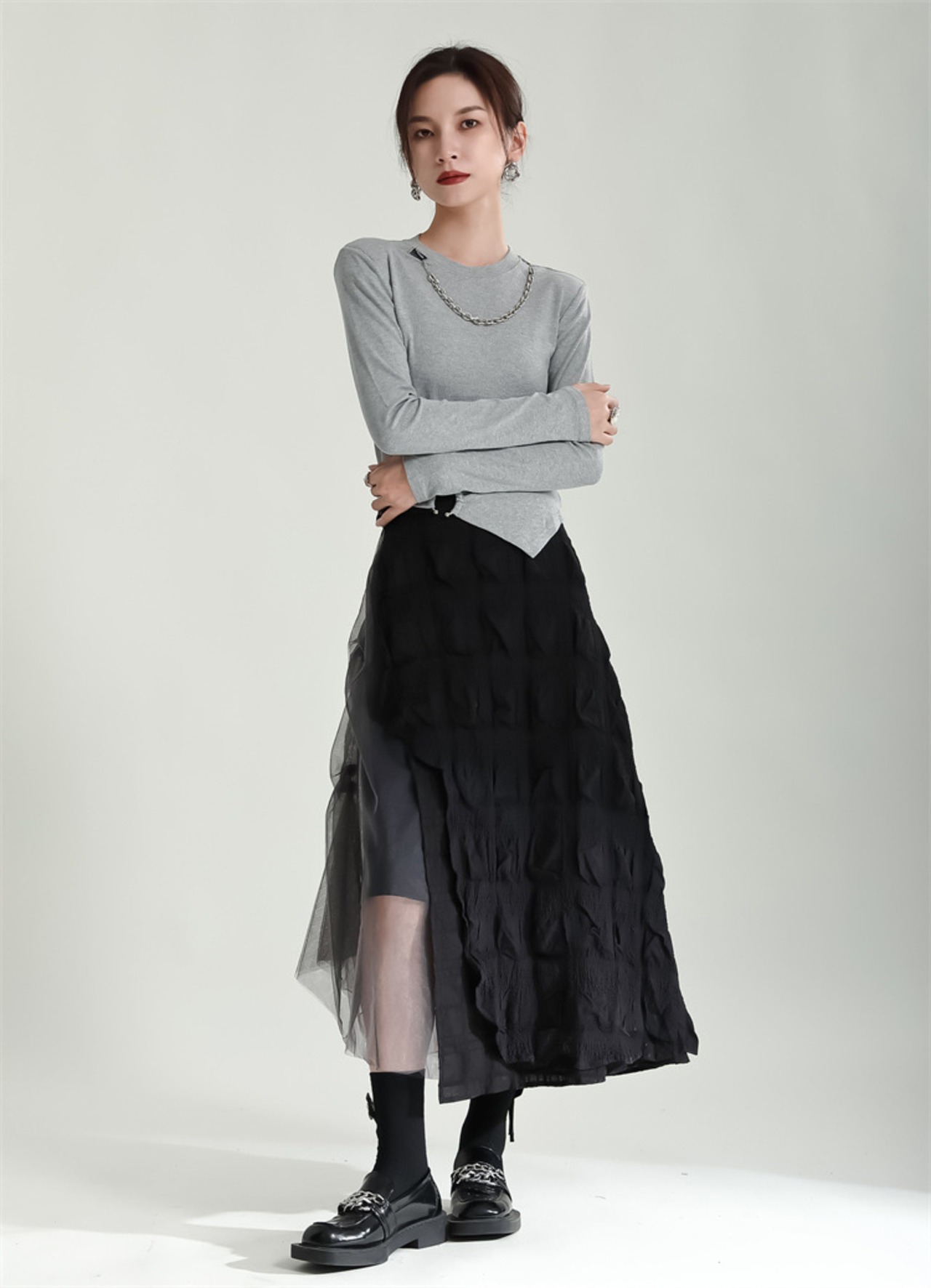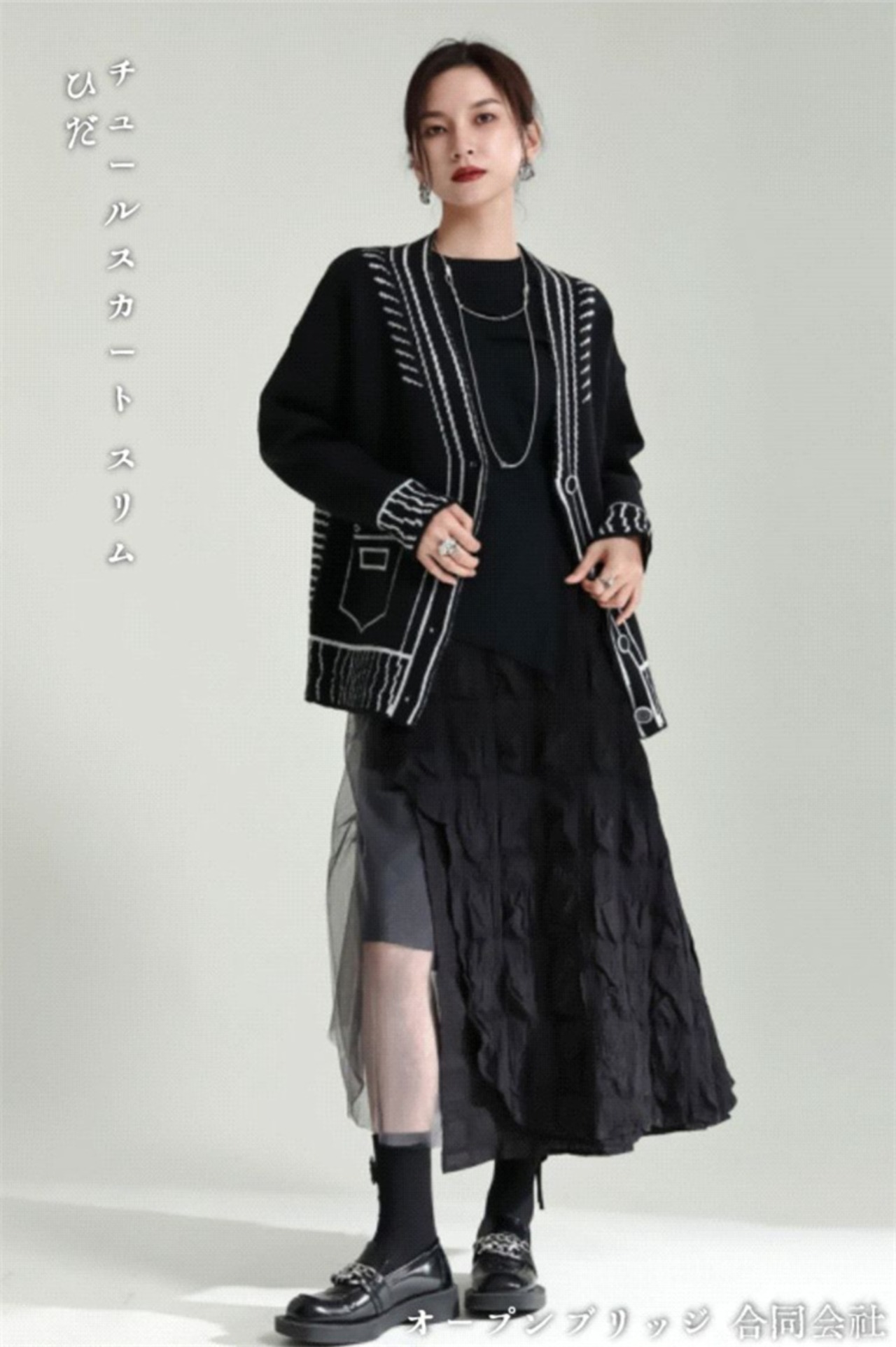 つなぎ ロングスカート チュールスカート スリム ひだ Aラインスカート 洋服 レディースファッション