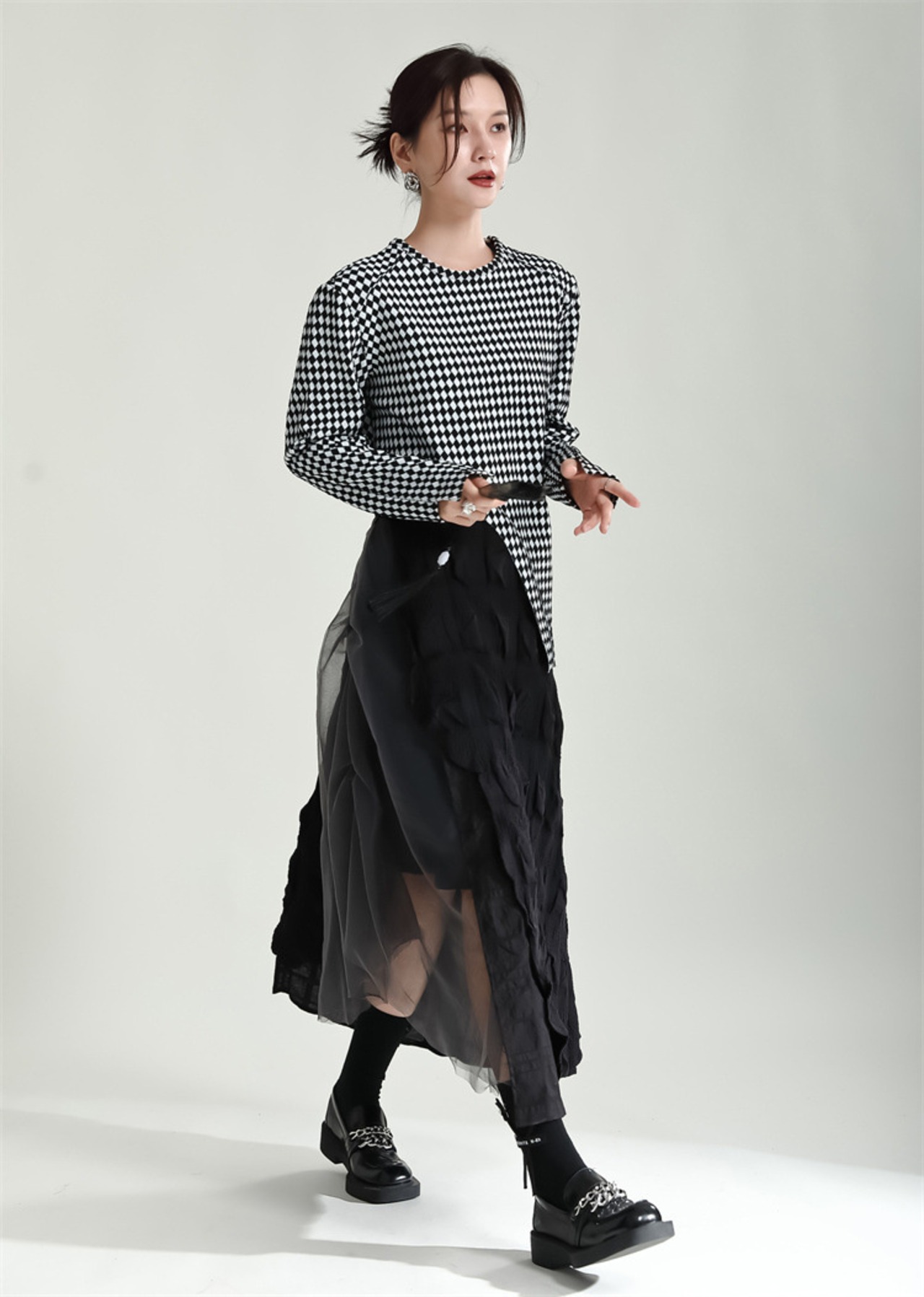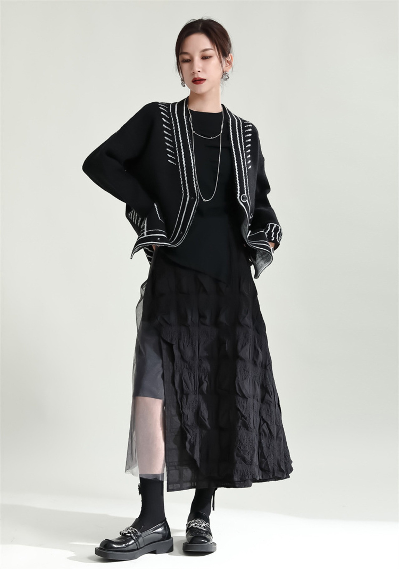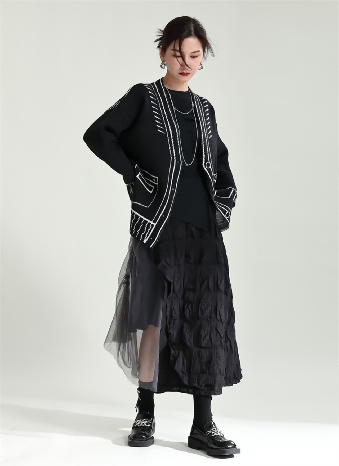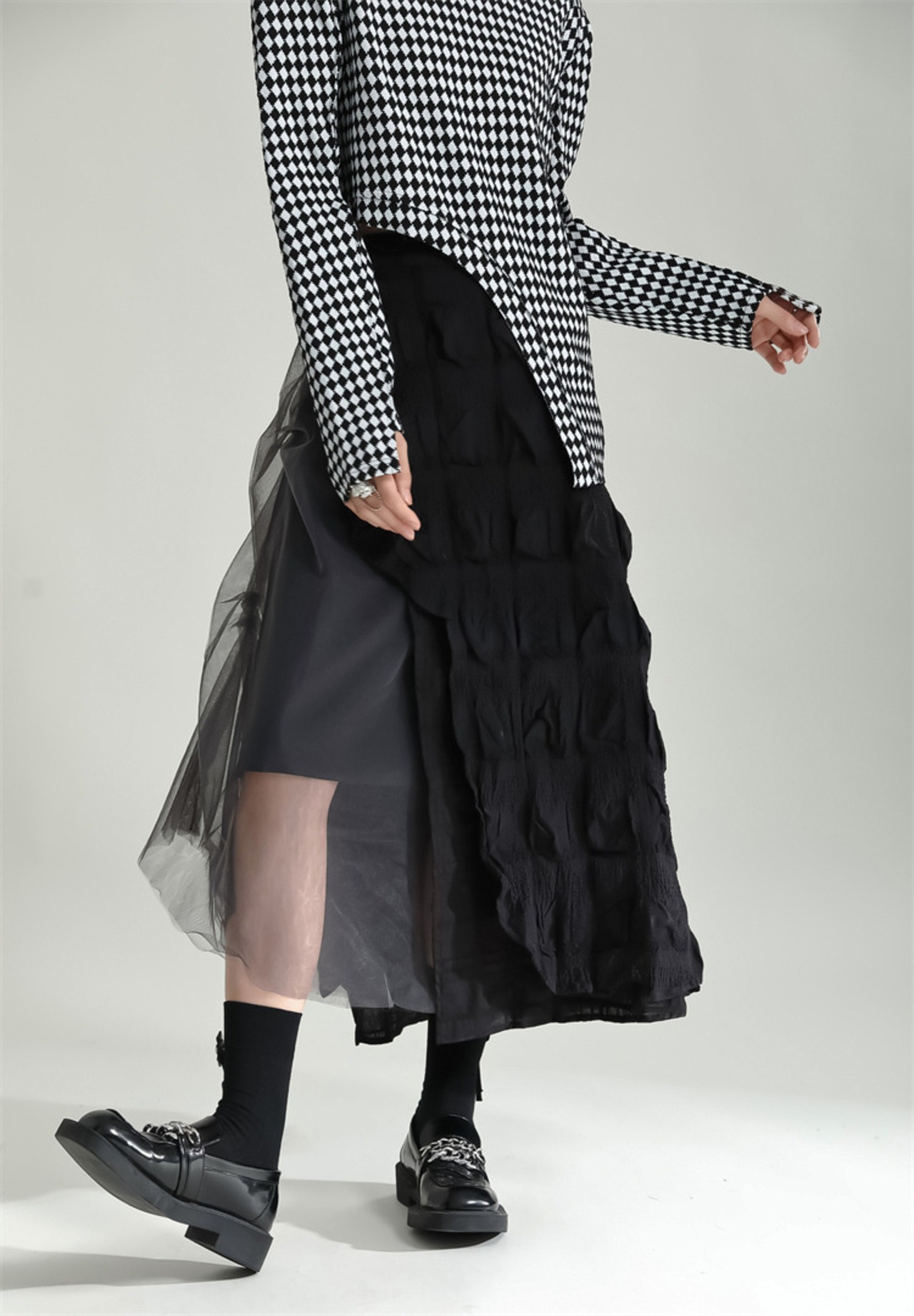 つなぎ ロングスカート チュールスカート スリム ひだ Aラインスカート 洋服 レディースファッション