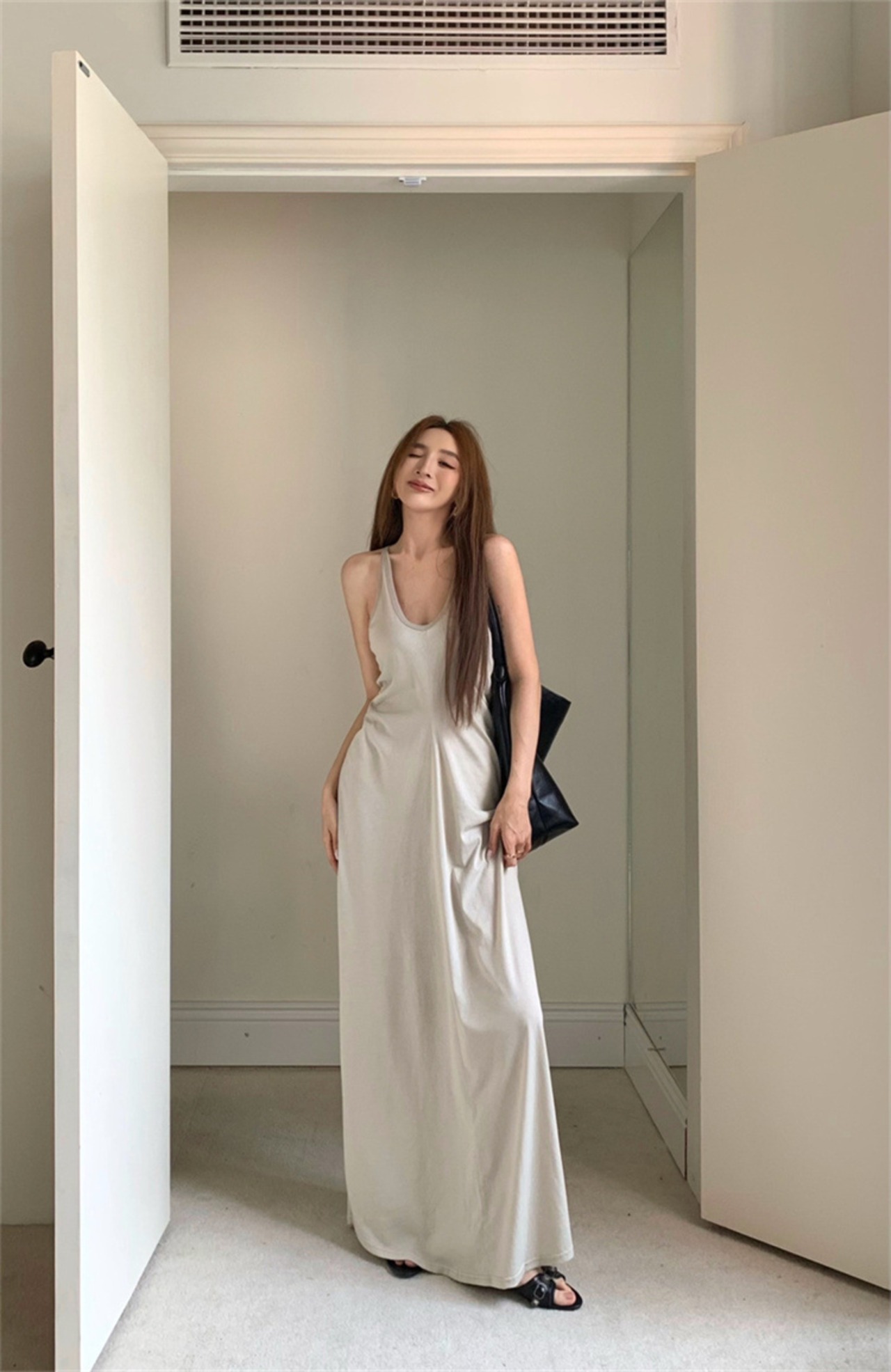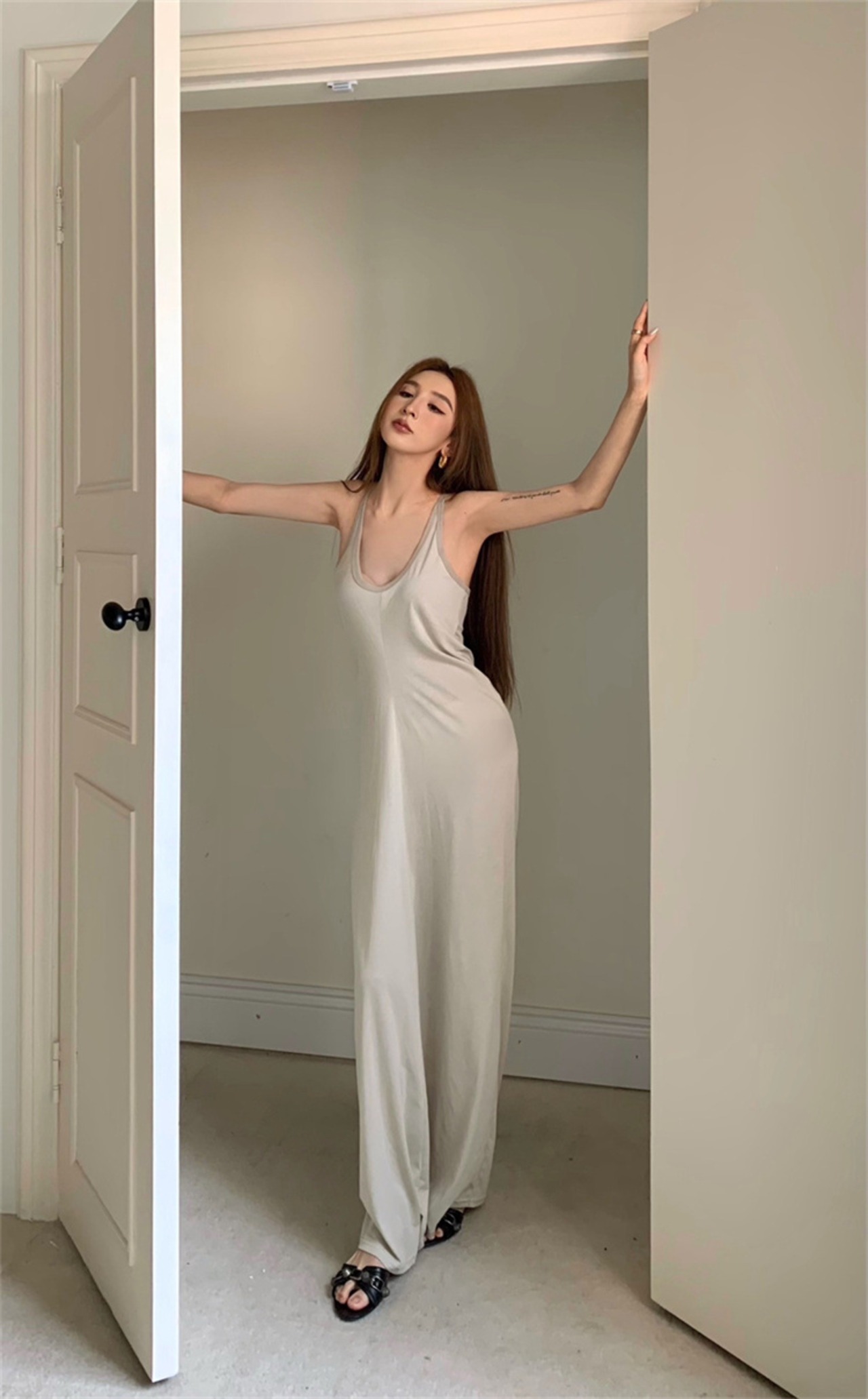 ジャンパースカート ベストワンピース ハイウエスト ロングスカート 袖なし ノースリーブ 洋服 レディースファッション