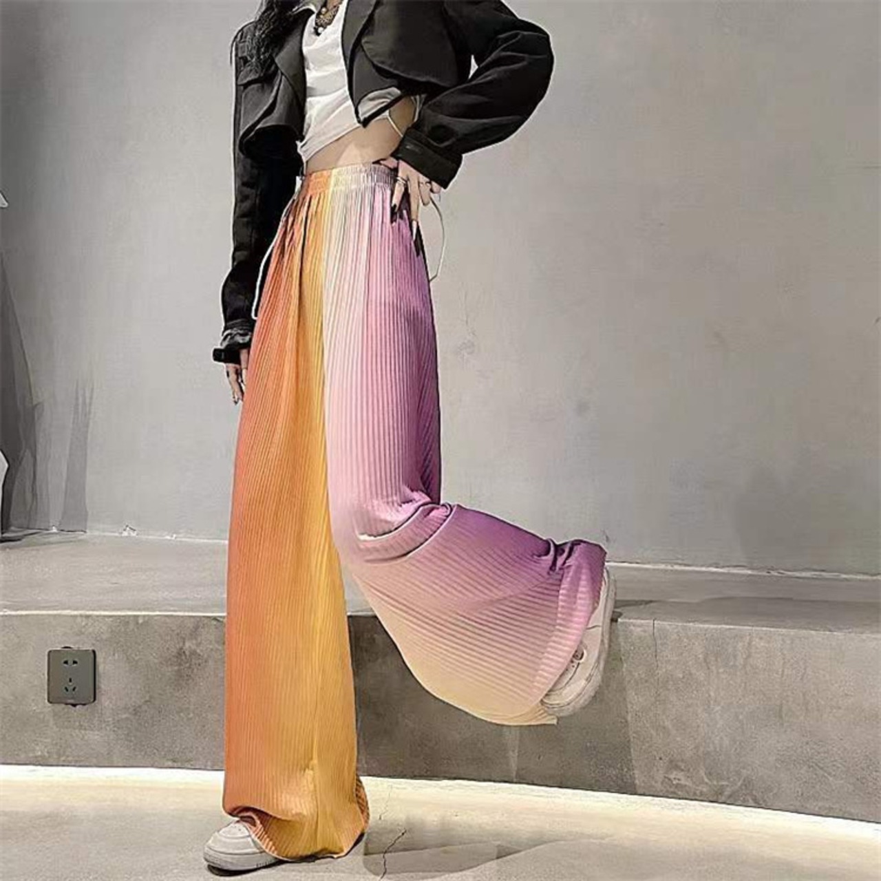 ロングパンツ グラデーション ワイドパンツ ストレートパンツ スラックス