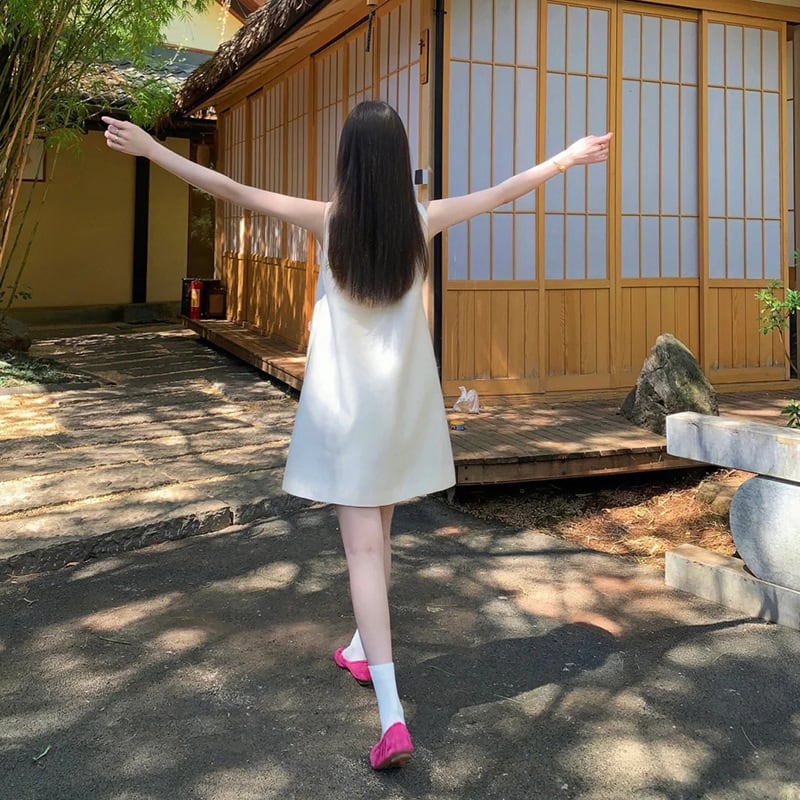 ラウンドネック ワンピース ミニスカート 袖なし ジャンパースカート 洋服 レディースファッション