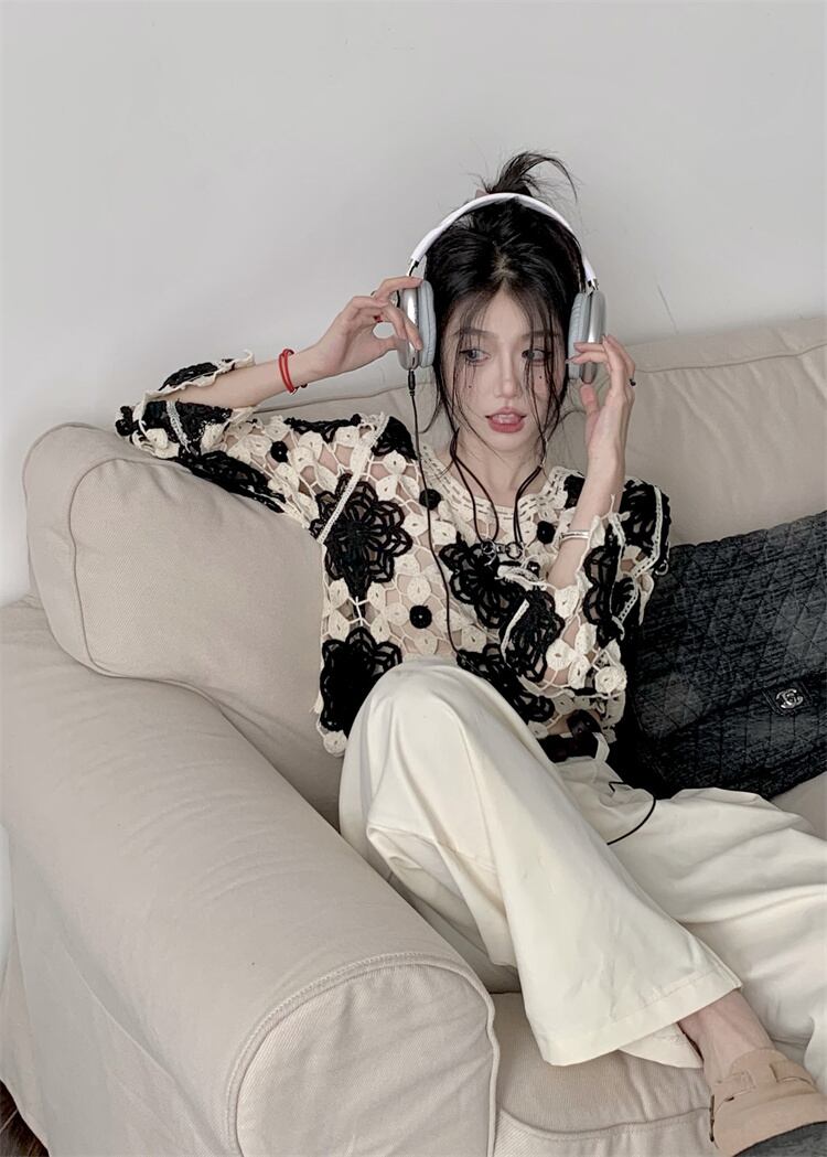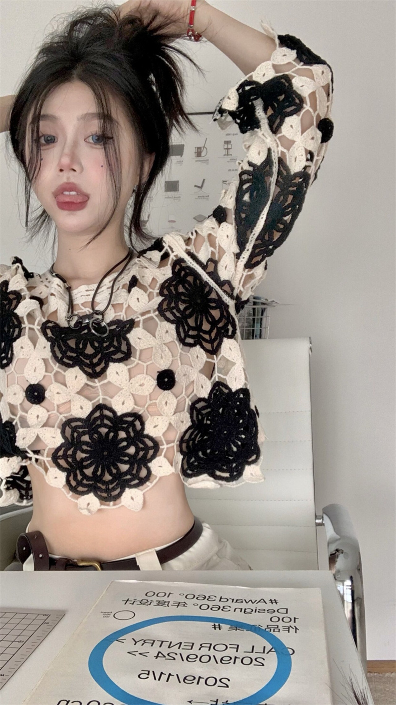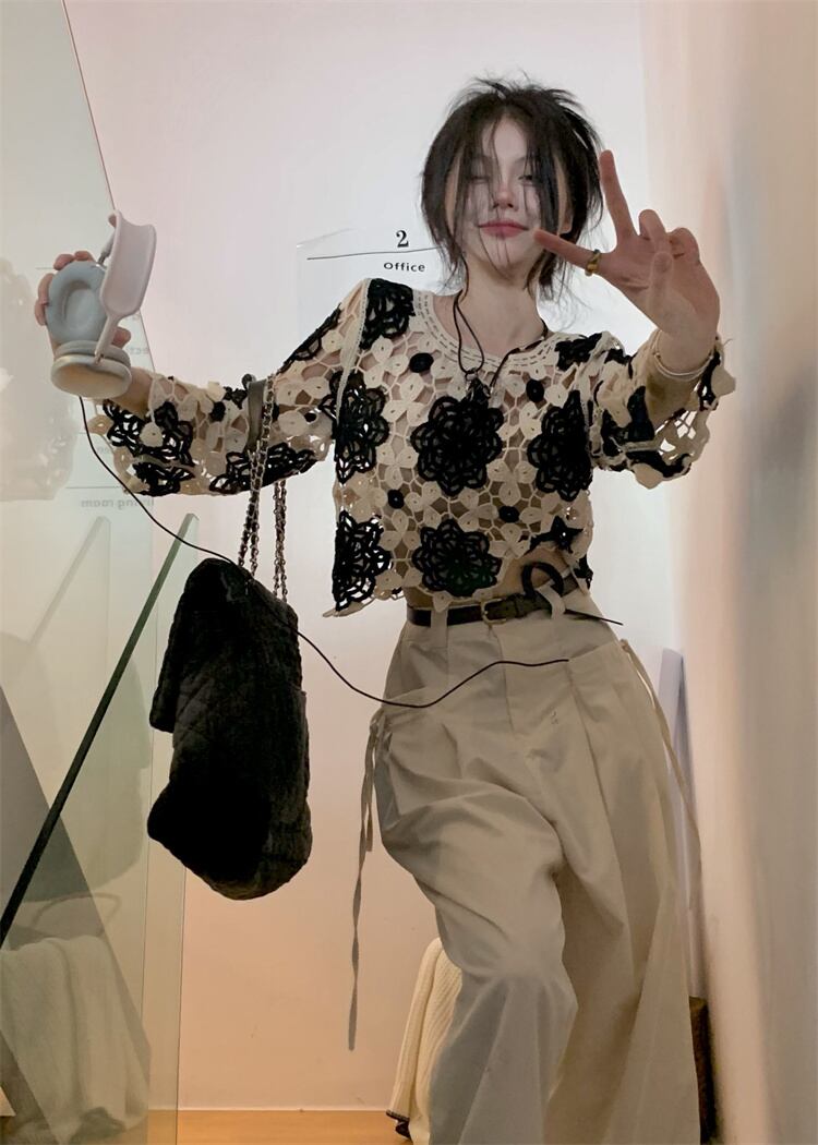 トップス 鉤花 透かし デザインセンス 長袖 ニットトップス 上着