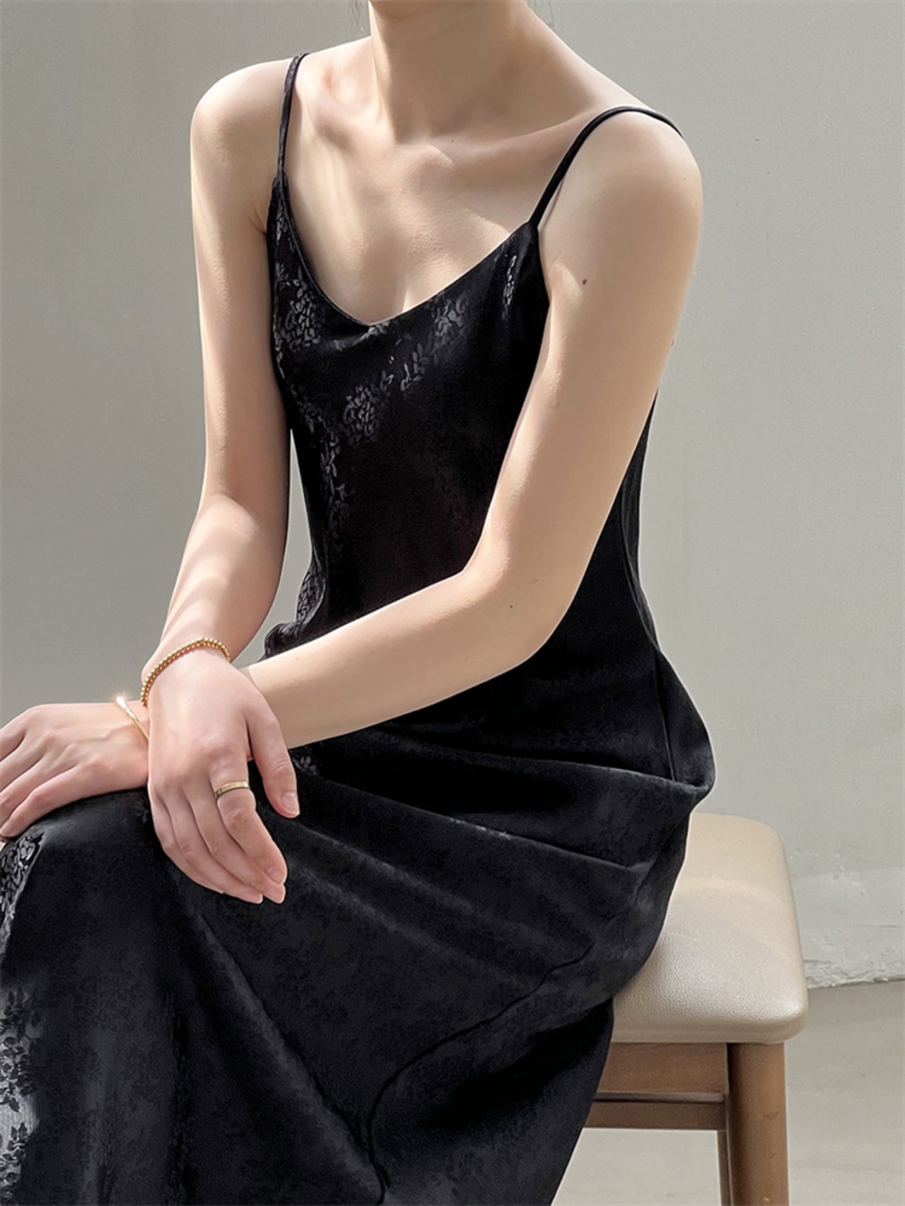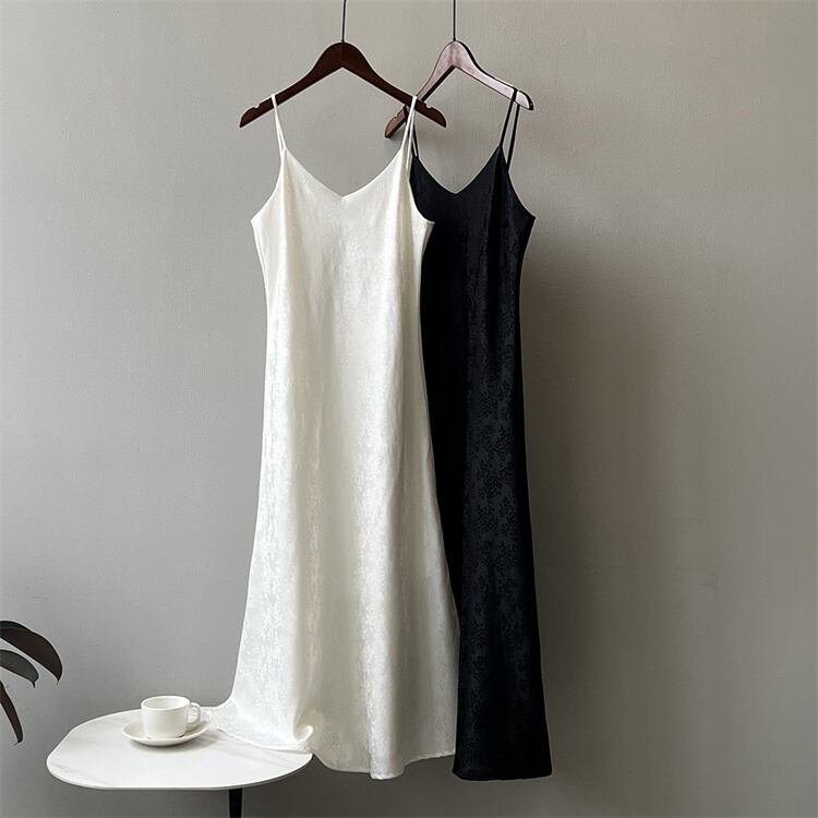 さり気なく旬を取り入れる キャミソールワンピース 袖なし ロングスカート サテン ジャカード