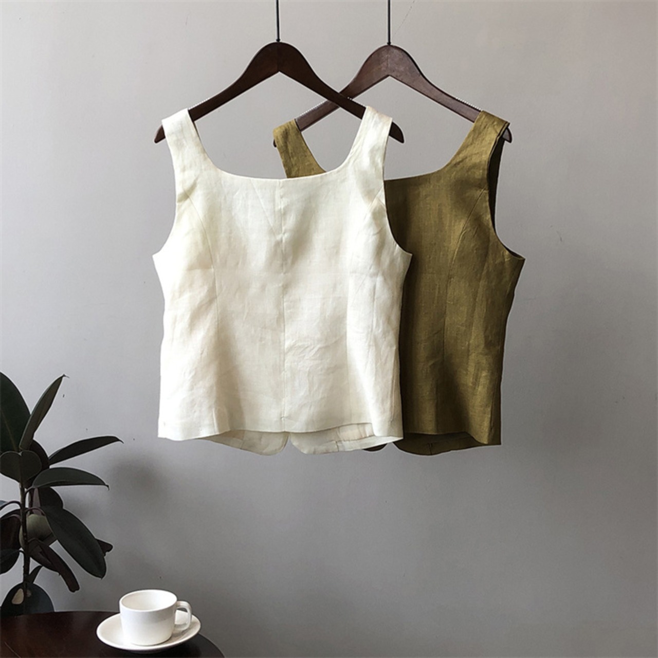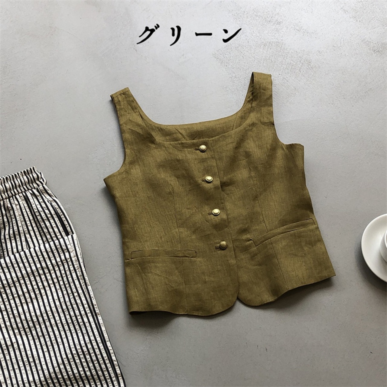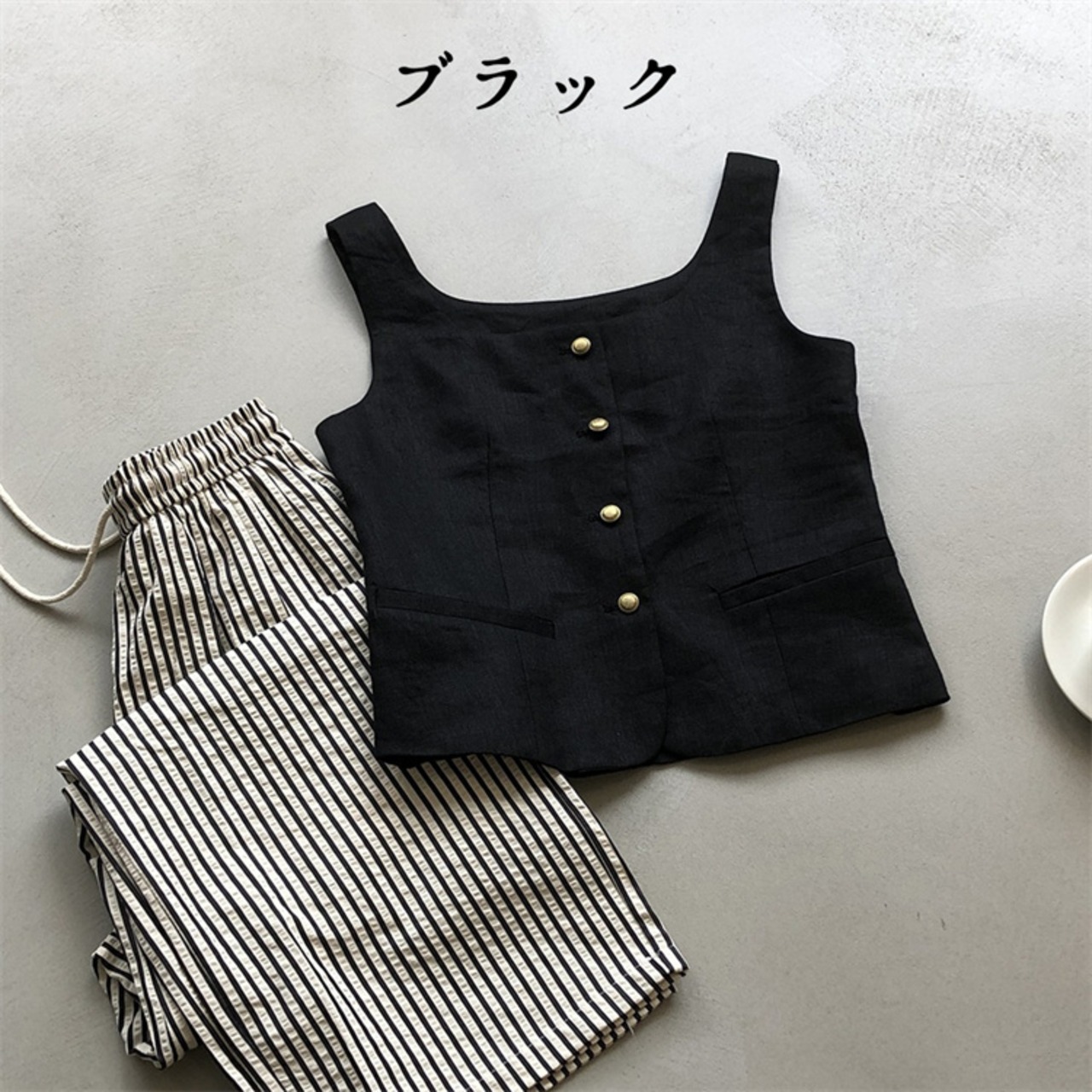 タンクトップ リネン ベスト トップス スクエアネック 洋服 レディースファッション