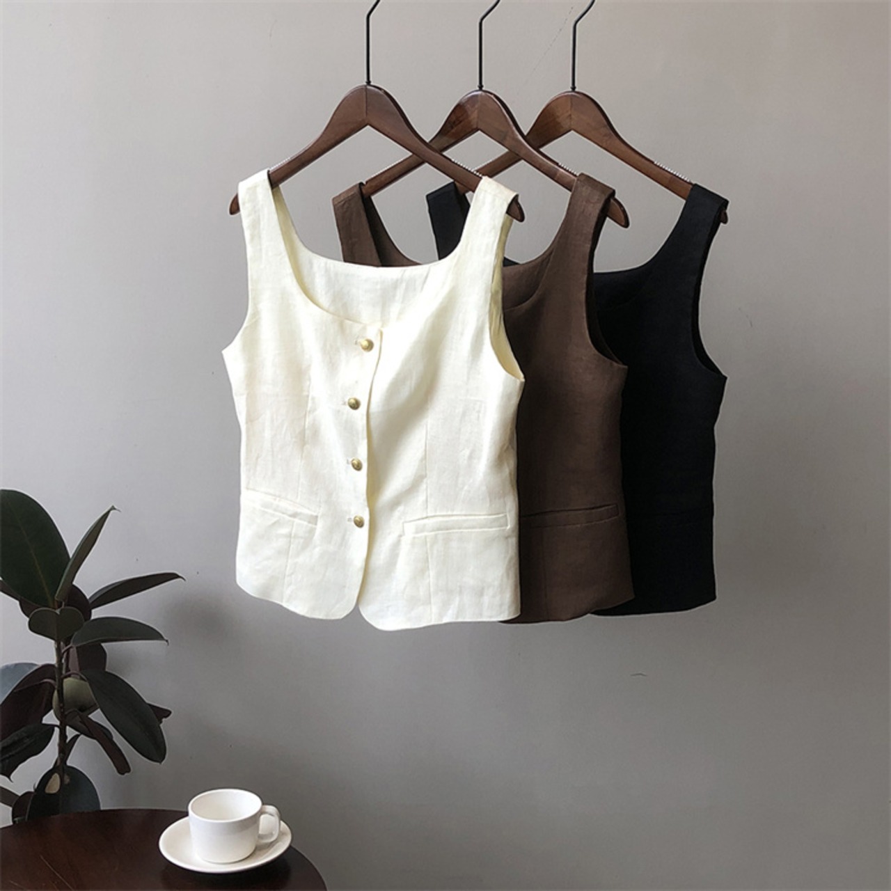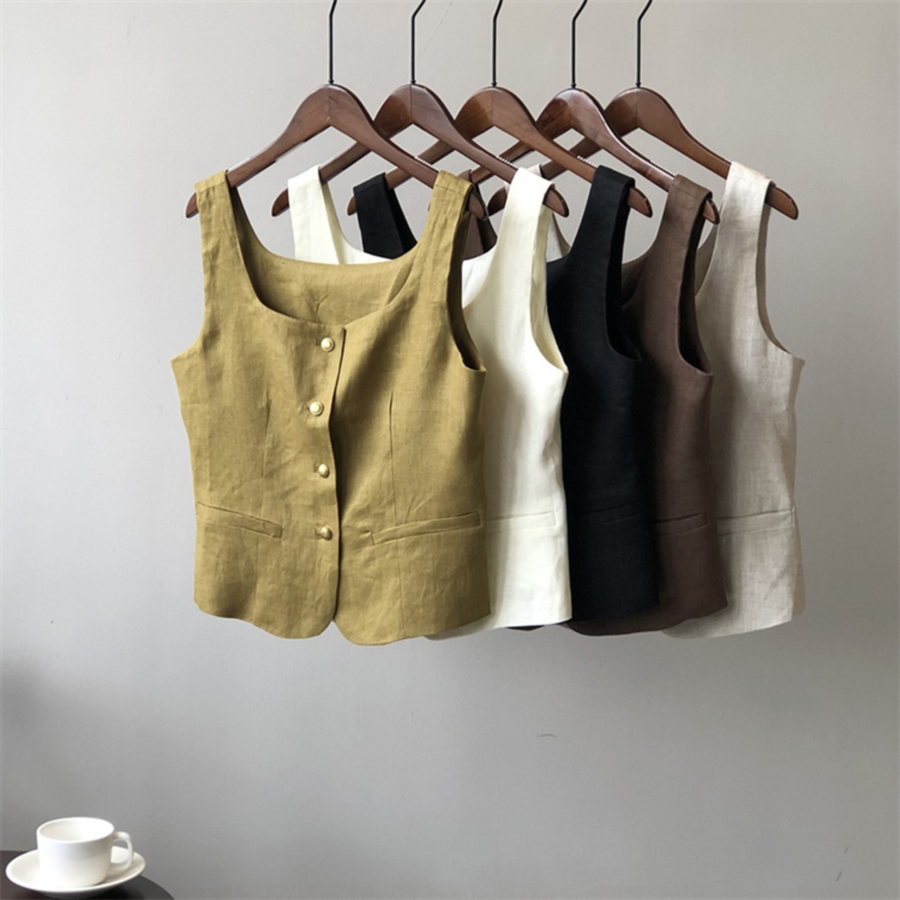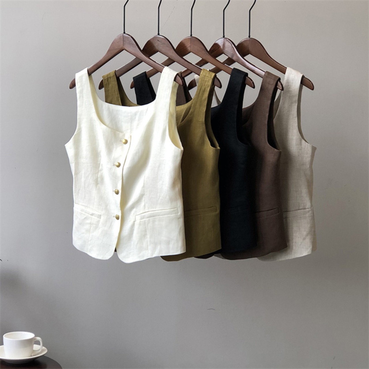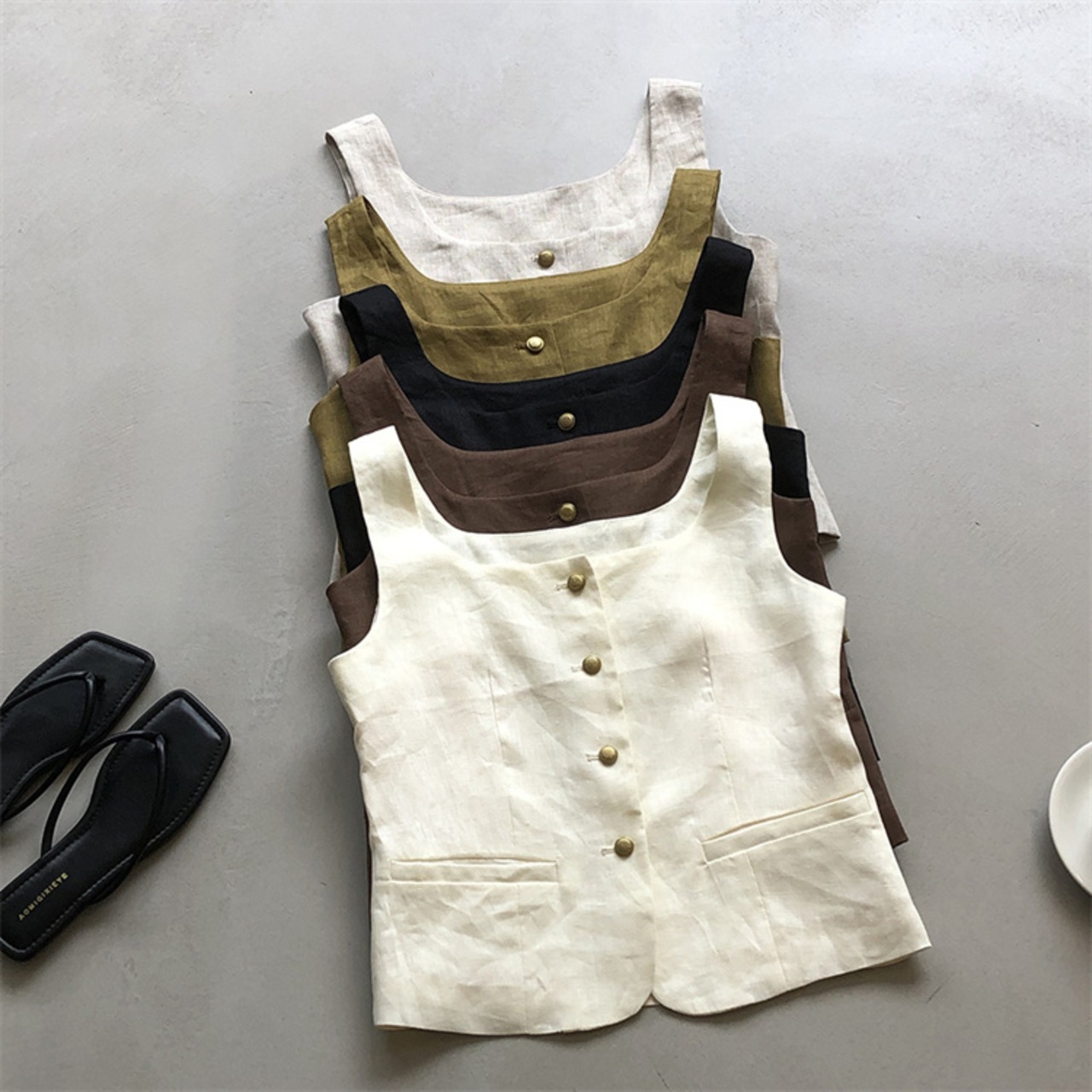 タンクトップ リネン ベスト トップス スクエアネック 洋服 レディースファッション