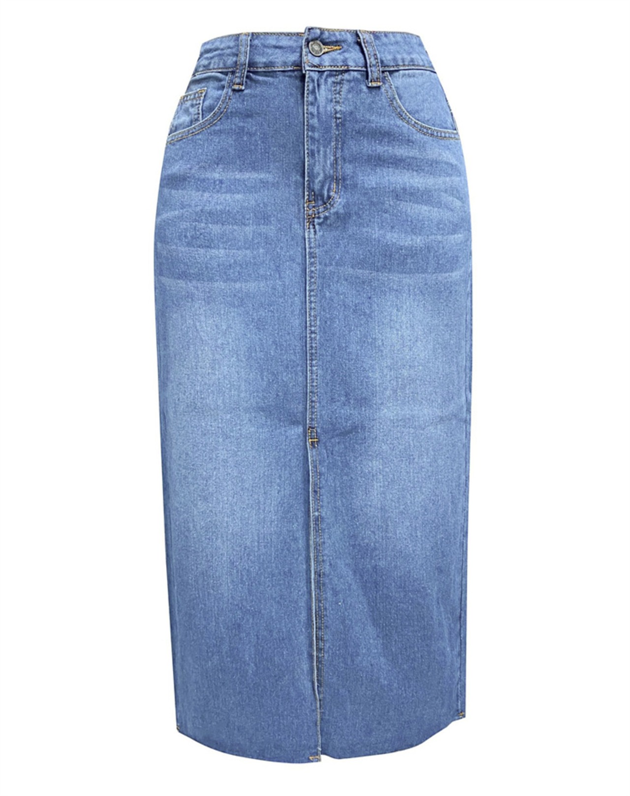 魅力を醸し出す スプリット ミディアムスカート デニムスカート ロングスカート スカート