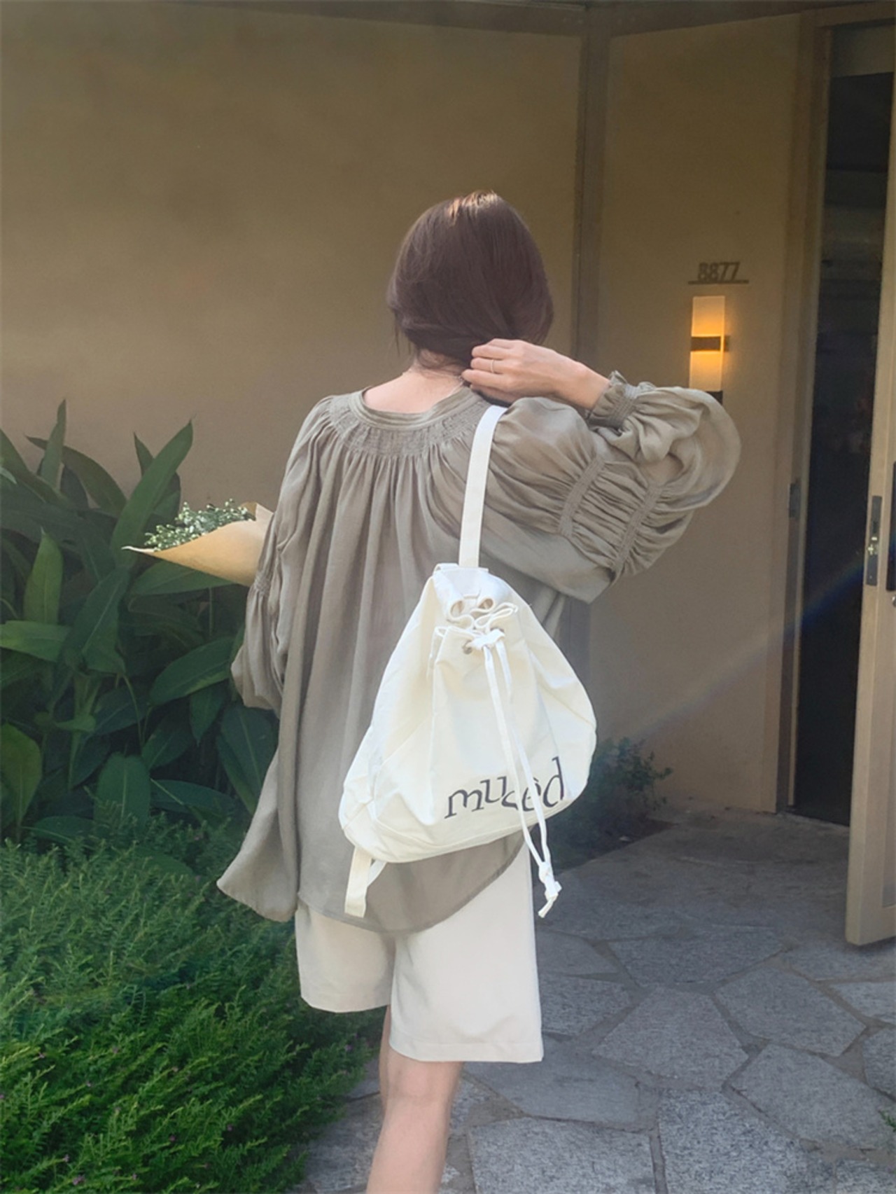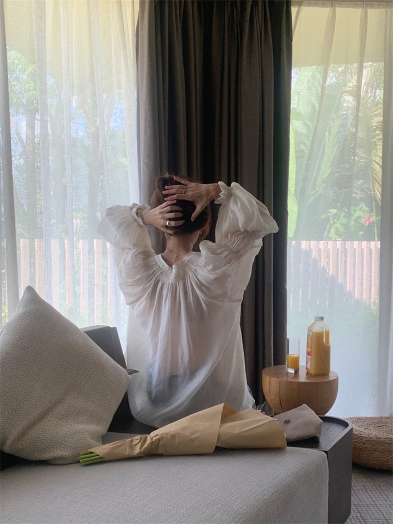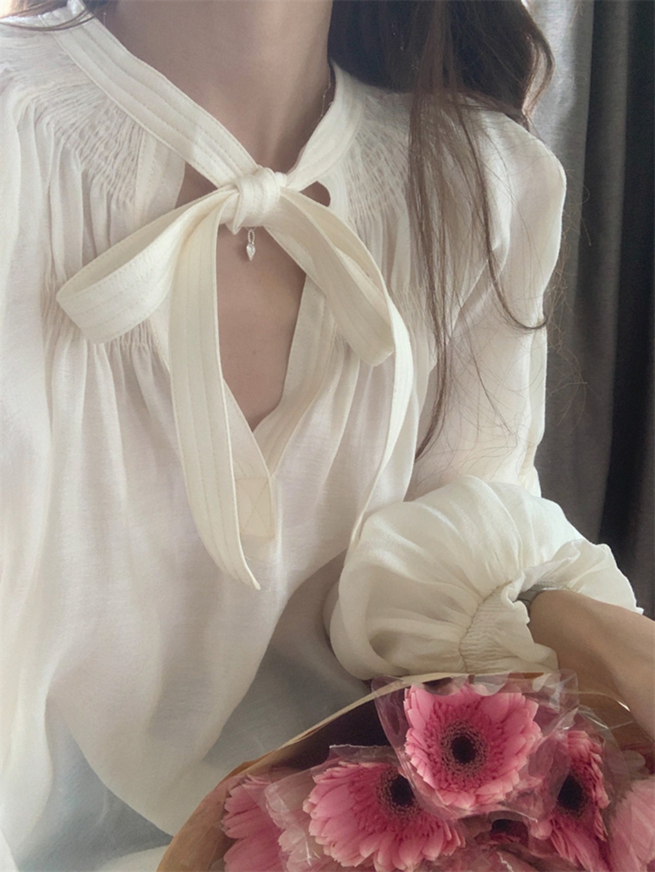トップス つぼみ袖 ゆったり シャツ 長袖 スリム Vネック 洋服 レディースファッション