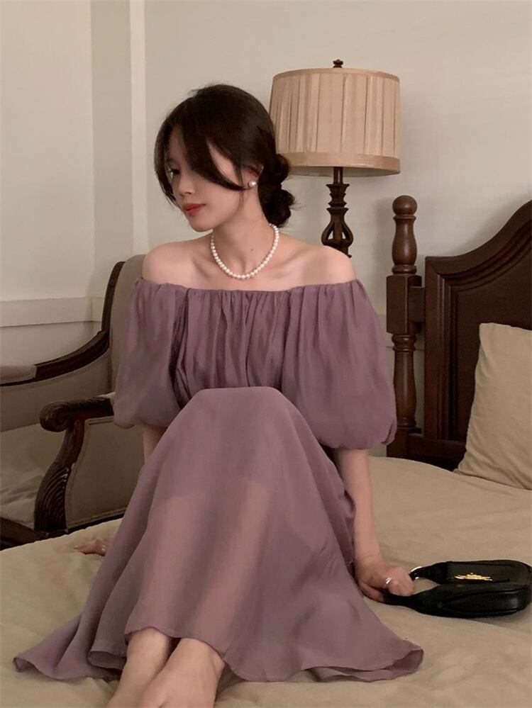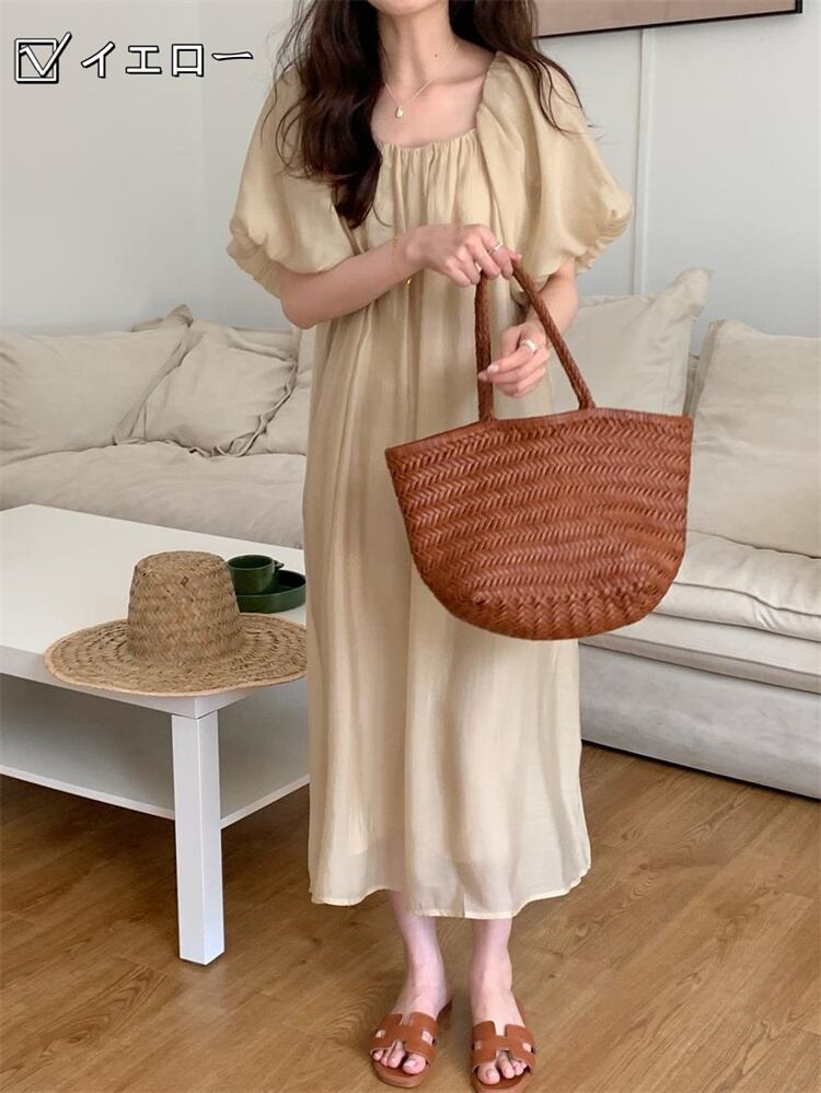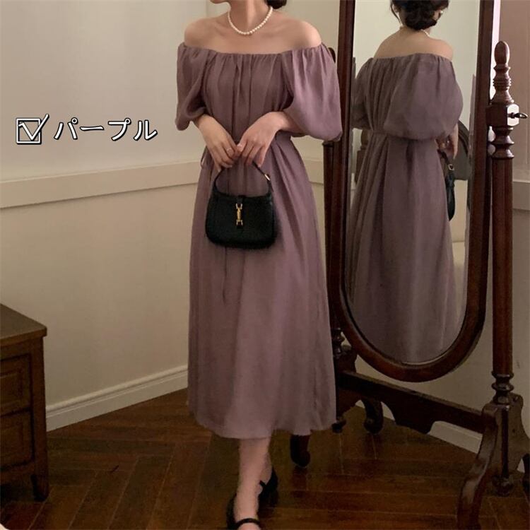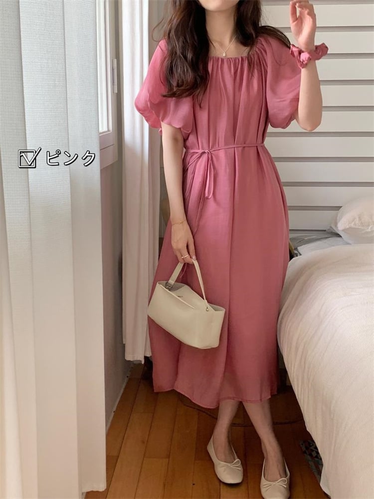 ワンピース 毎日着たいデザイン sweet系 パフスリーブ 帯締め ロングスカート
