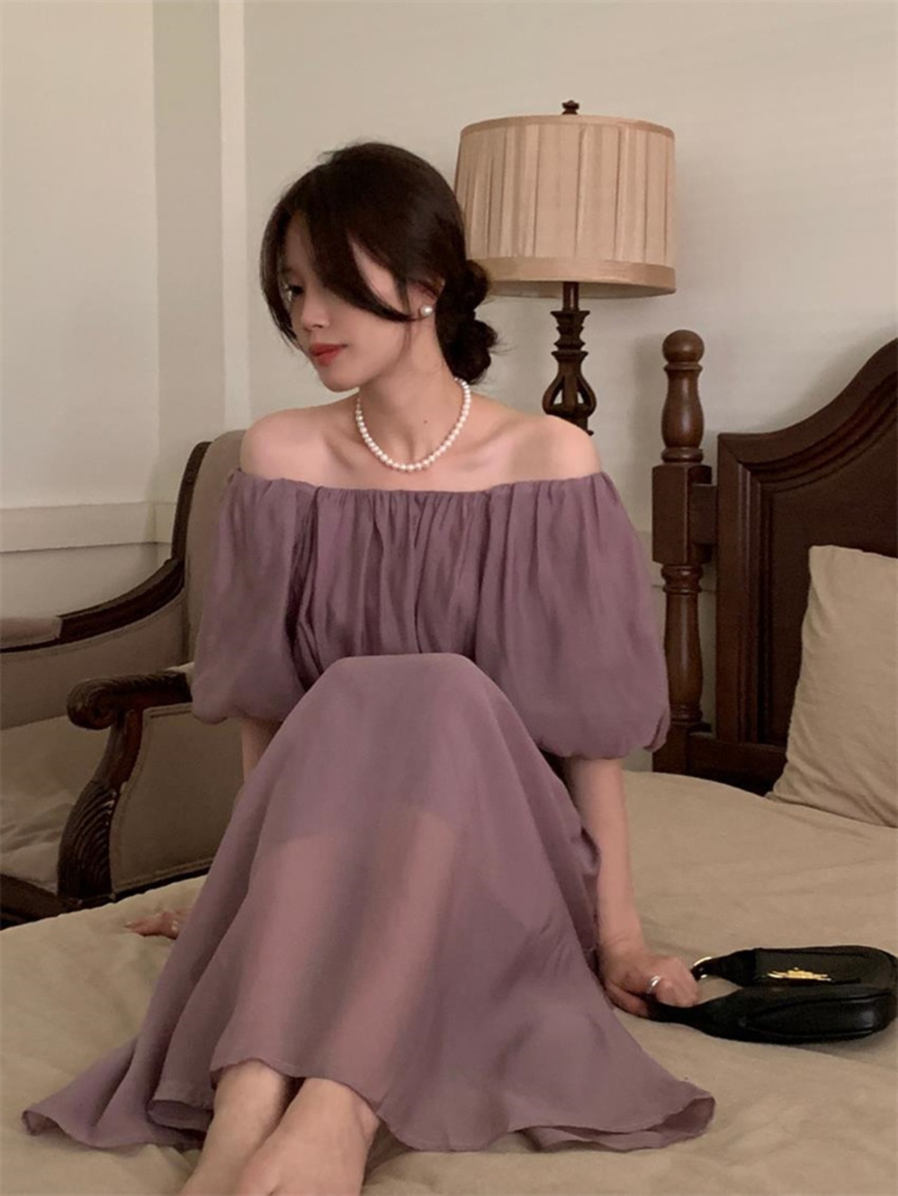 sweet系 パフスリーブ 帯締め ロングスカート 洋服 レディースファッション