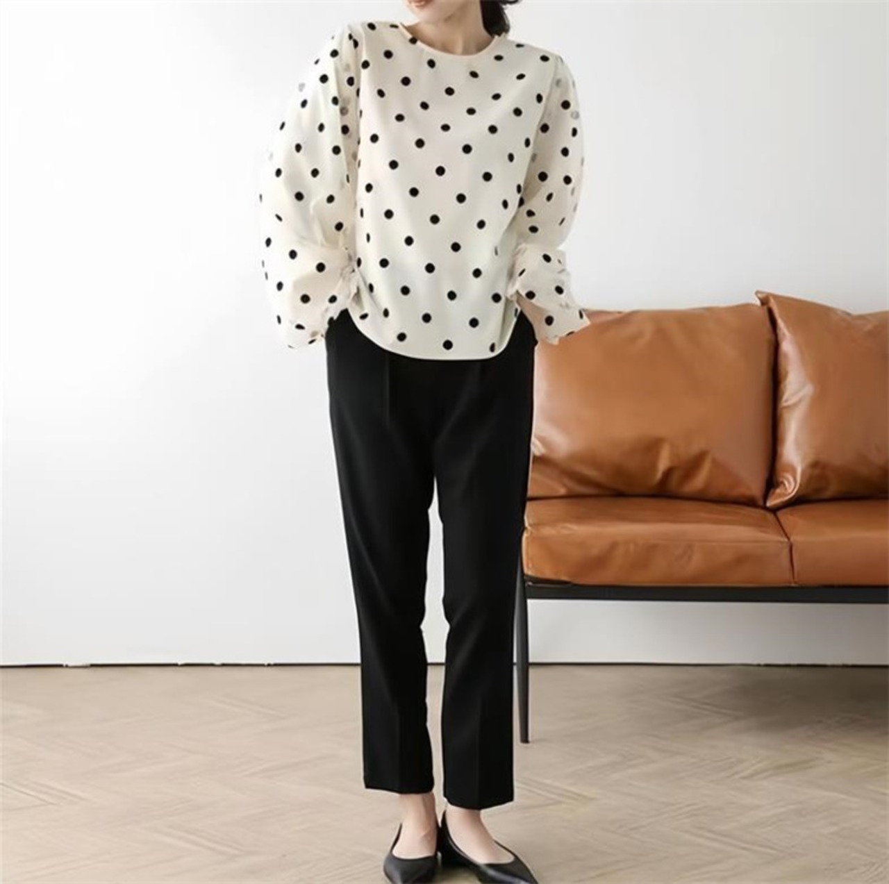 トップス ラウンドネック パフスリーブ レーヨン ドット 洋服 レディースファッション