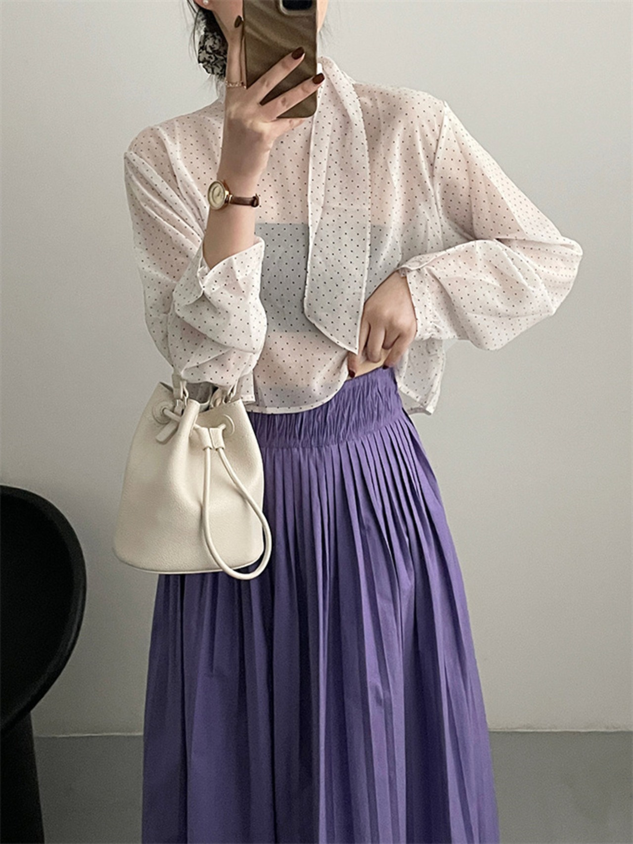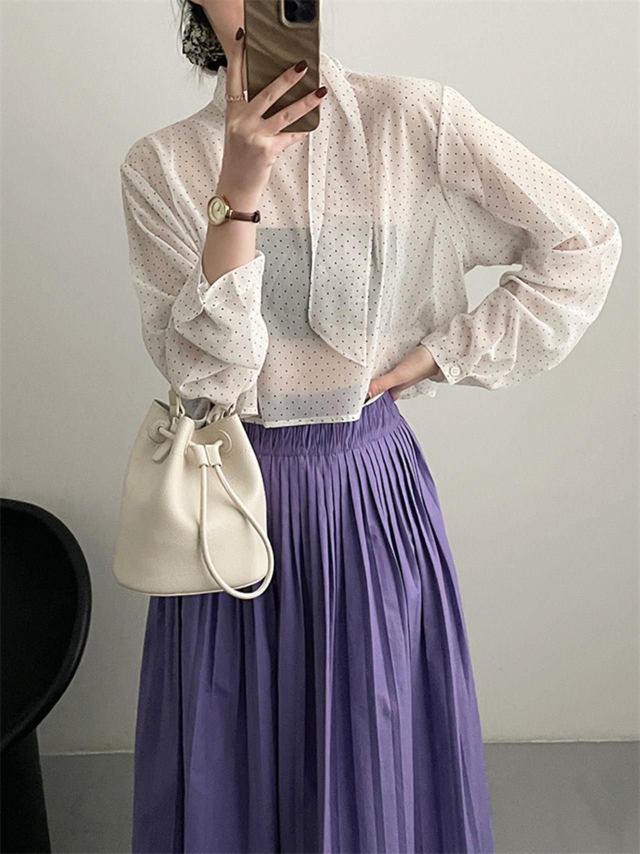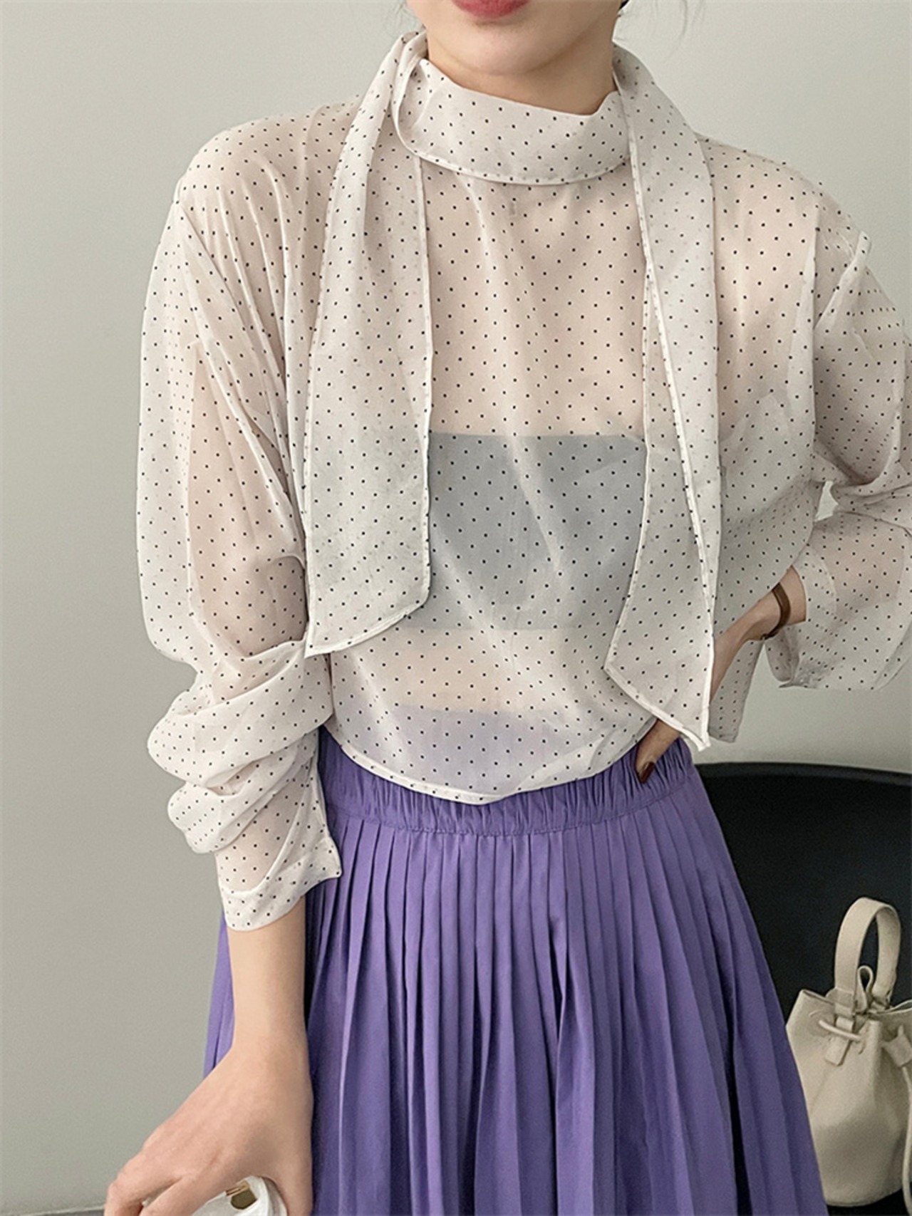 ドット リボン シャツ トップス 上着 スリム ブラウス 快適 洋服 レディースファッション