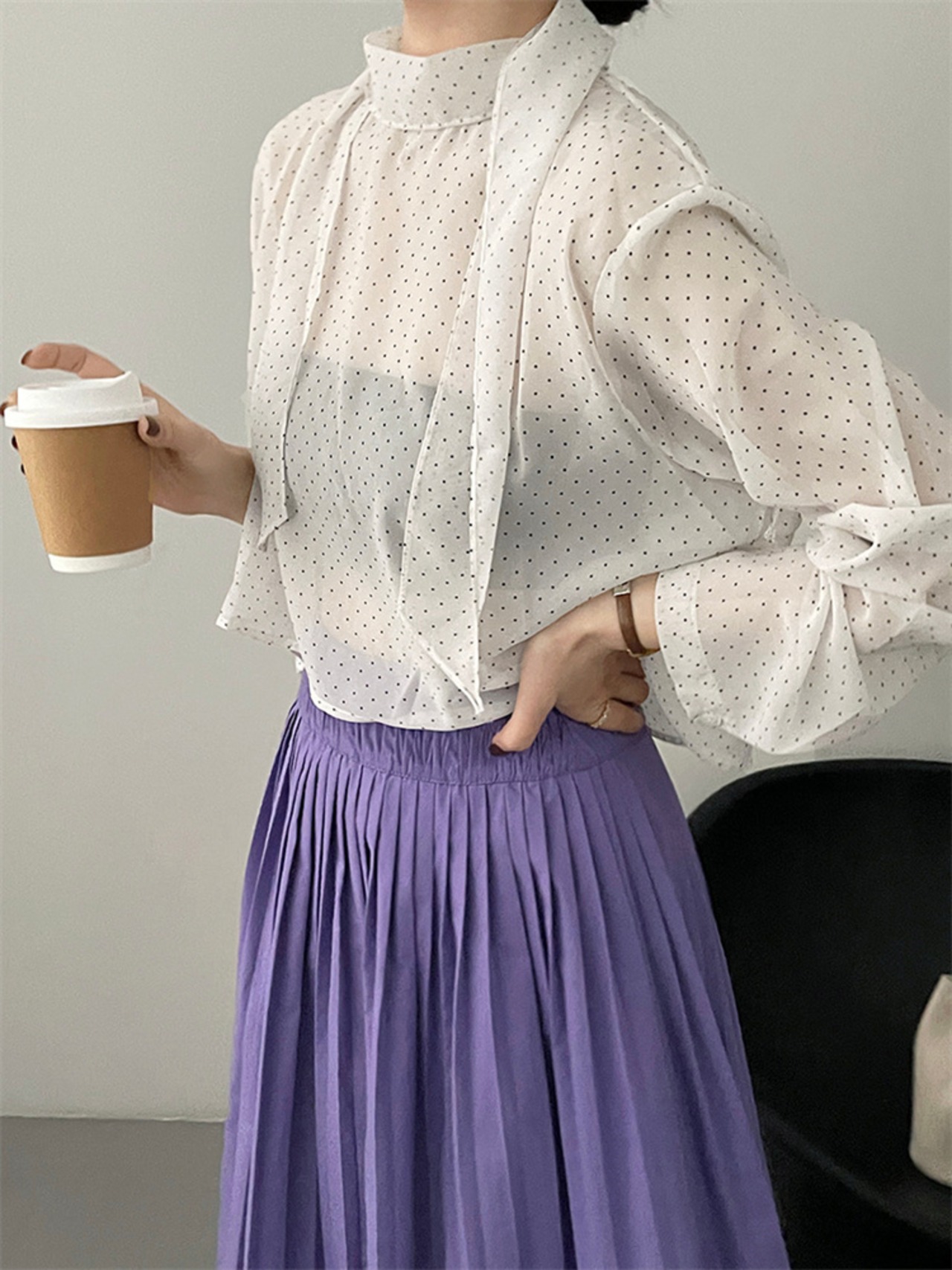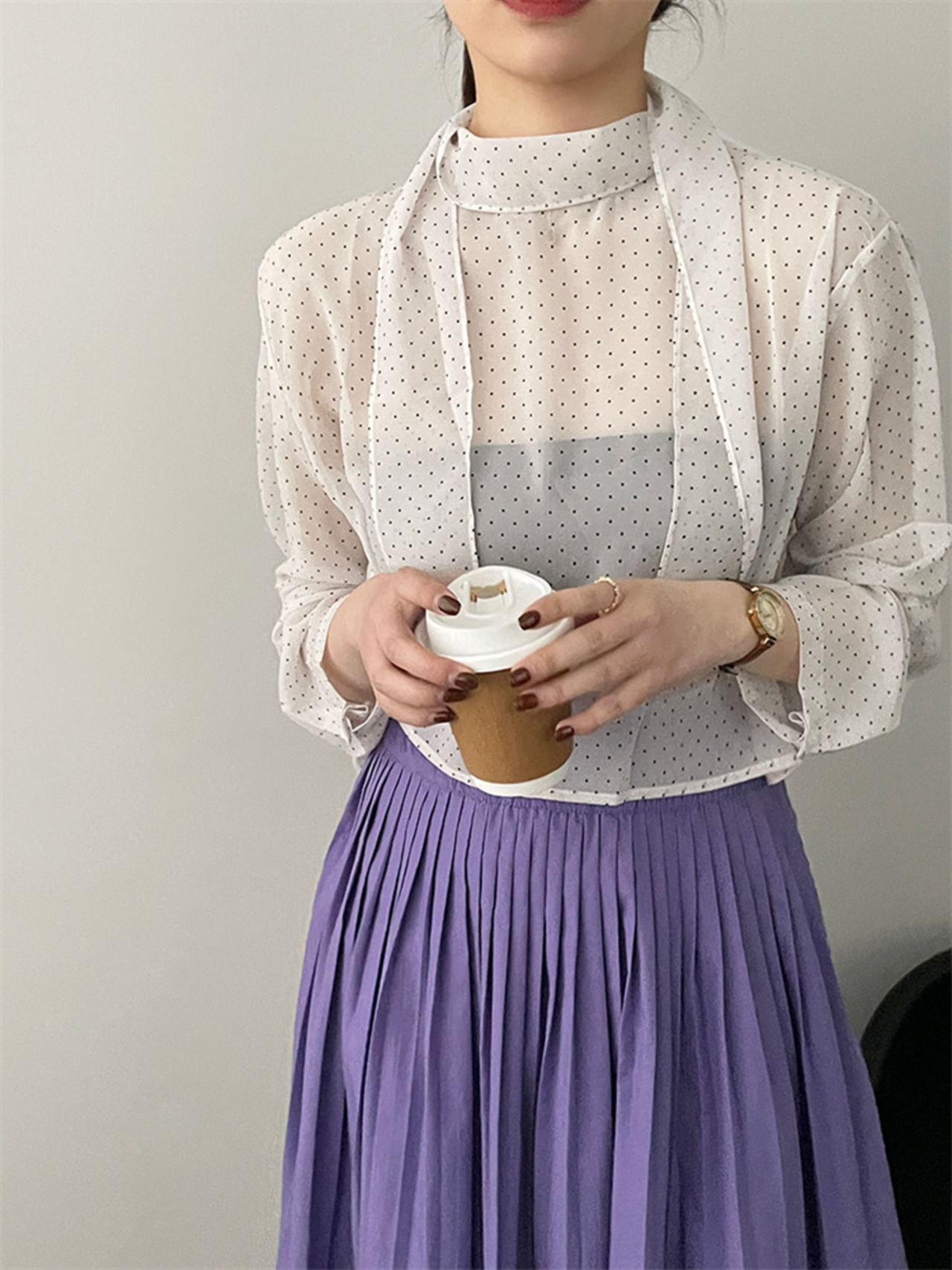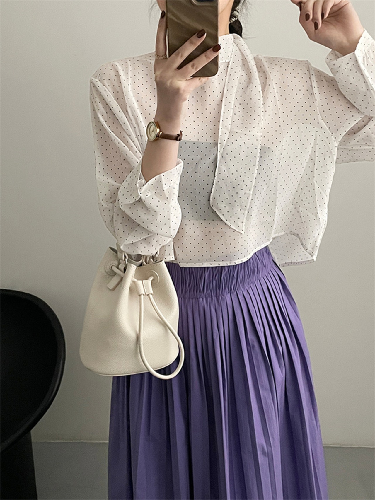 ドット リボン シャツ トップス 上着 スリム ブラウス 快適 洋服 レディースファッション