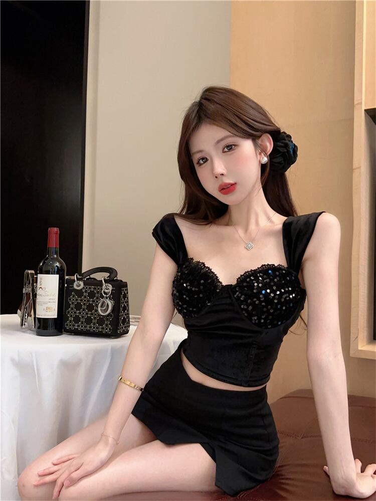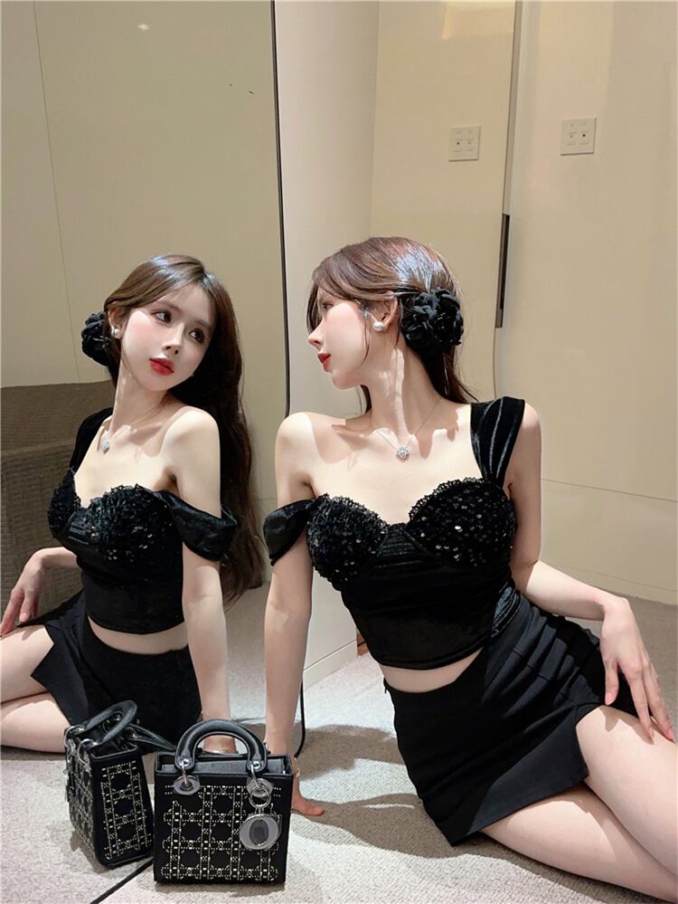 セクシー スパンコール トップス ベルベット 胸当て付き 大人気 洋服 レディースファッション