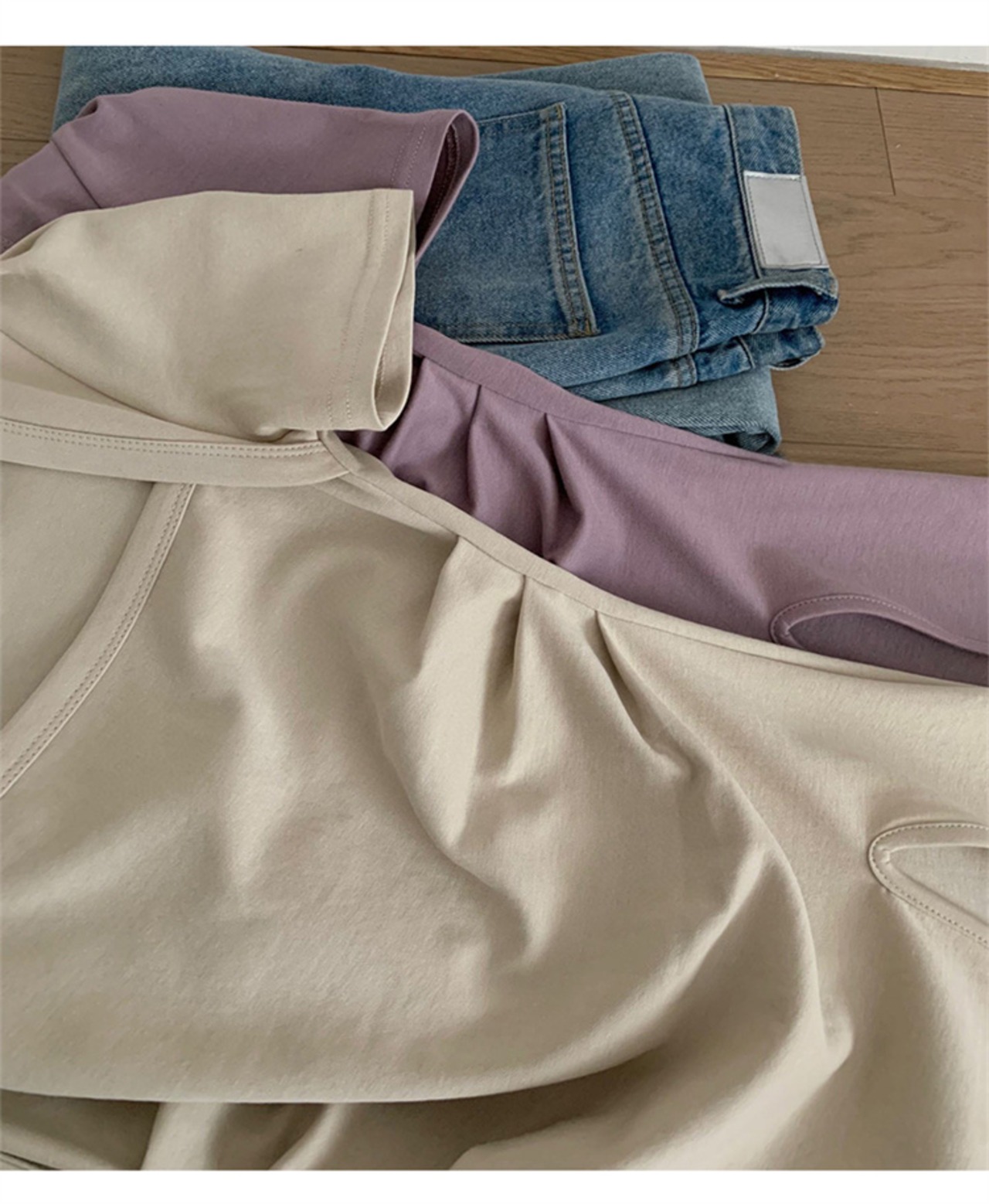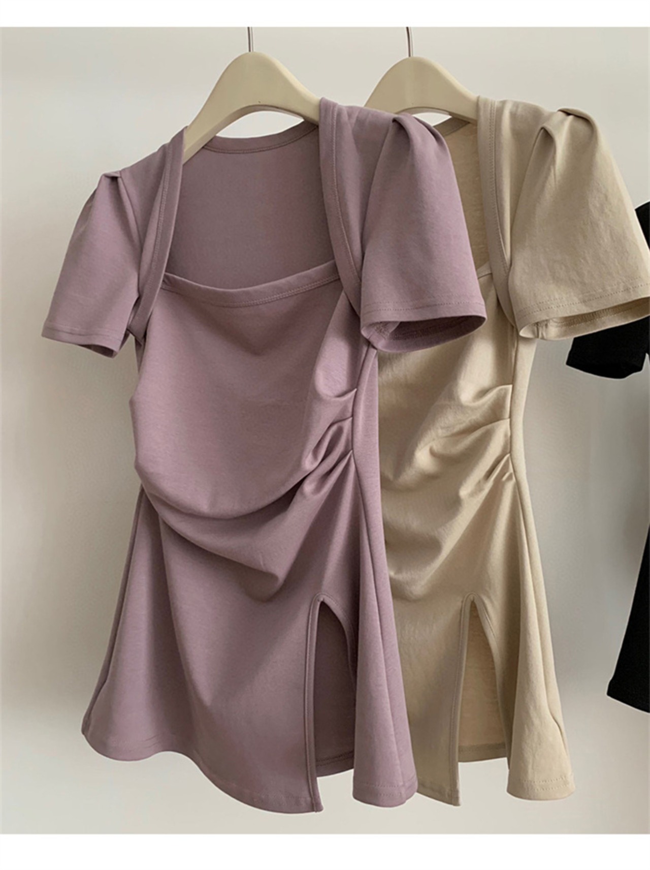 おしゃれと着心地を両立 半袖 Tシャツ スプリット スクエアネック 上着 トップス スリム