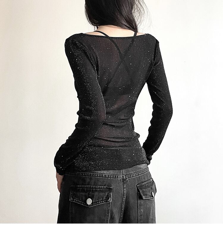 素敵なデザイン スパンコール ギャル 上着 長袖 Tシャツ トレンド トップス