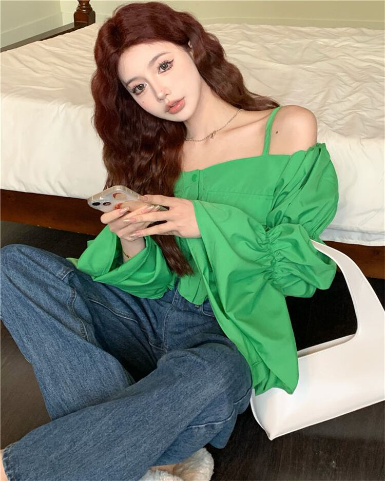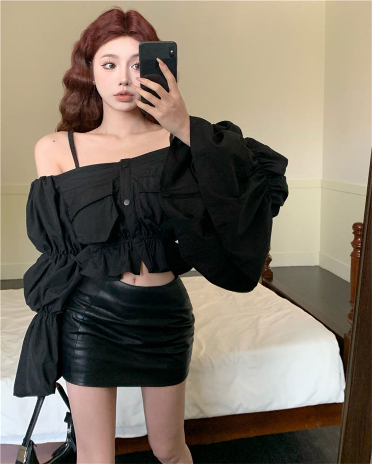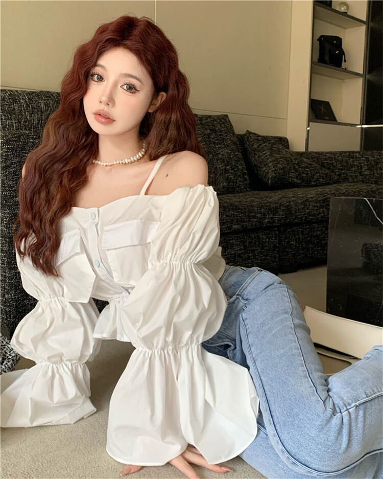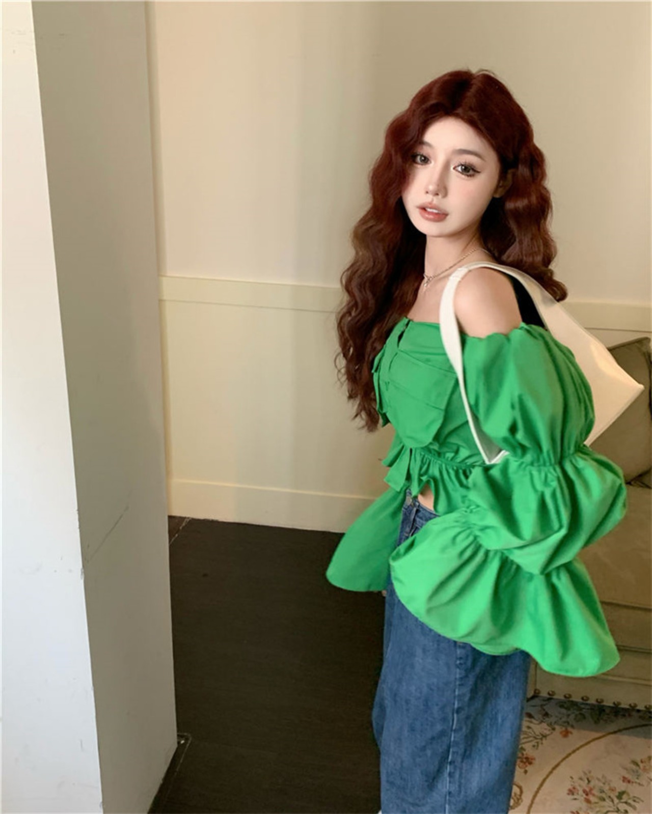 新しいスタイル 上着 トップス セクシー シャツ 春秋 パフスリーブ