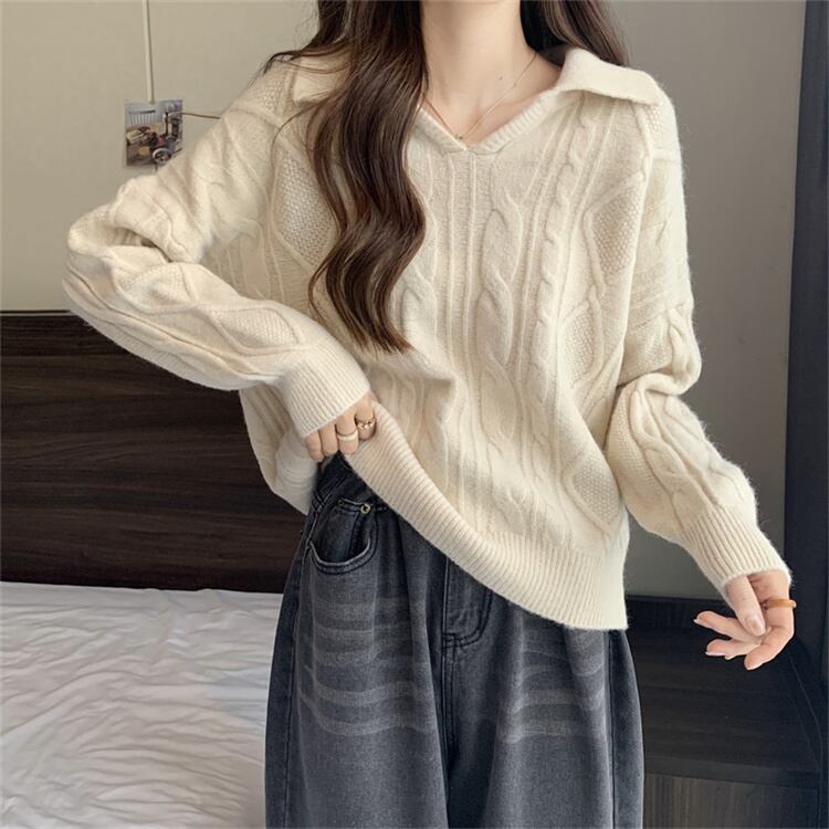 レトロ 麻花 セーター 秋冬 ゆったり ニットトップス 洋服 レディースファッション