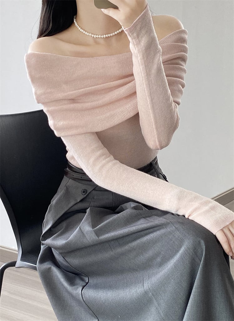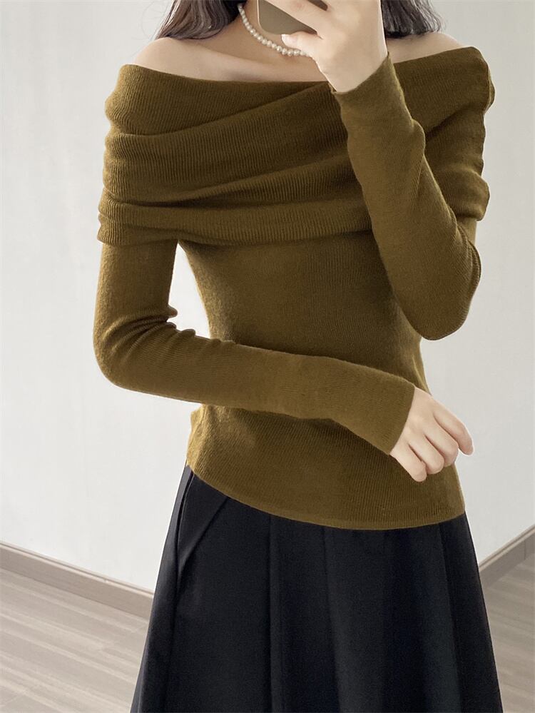 トップス ギャザリング ニットトップス sweet系 スリム 洋服 レディースファッション