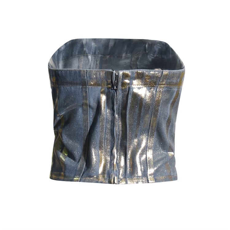 スリム トップス チューブトップ 個性的 短いスタイル デニム レディースファッション 洋服