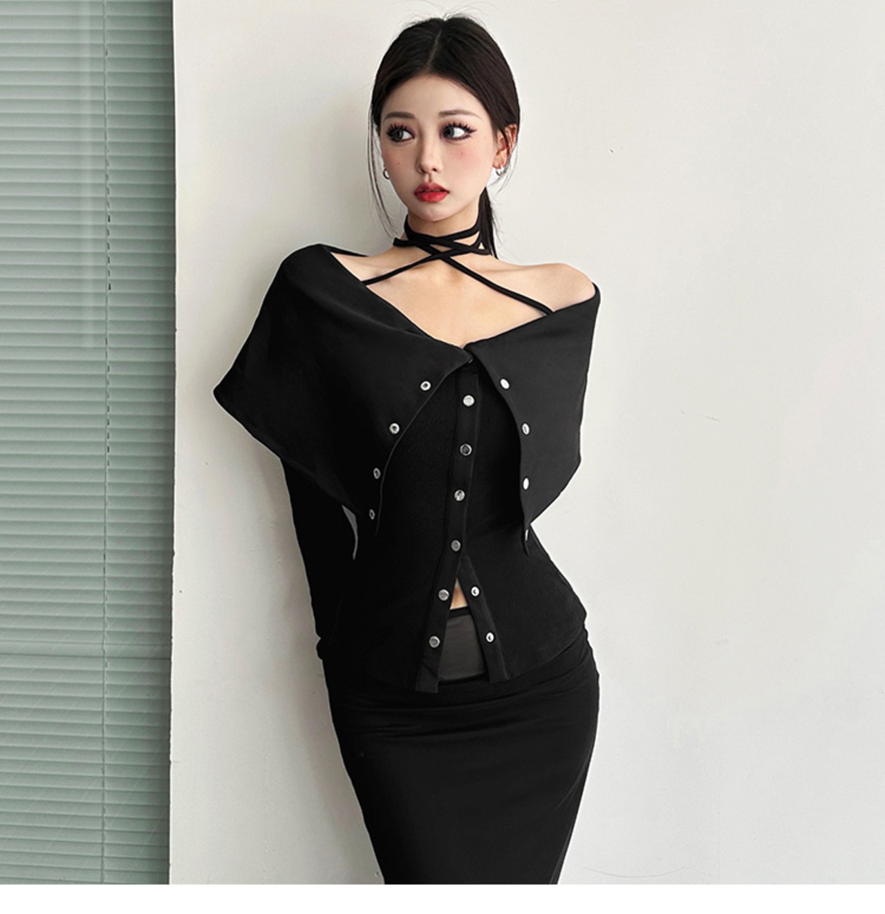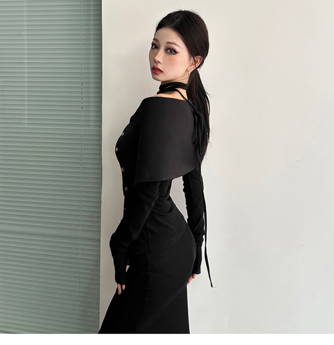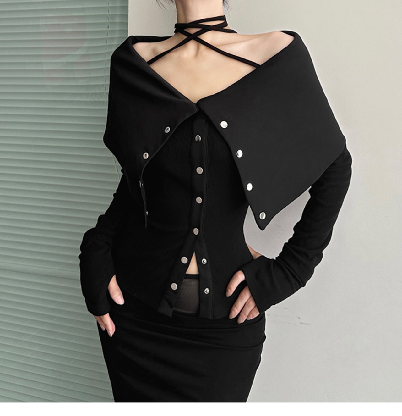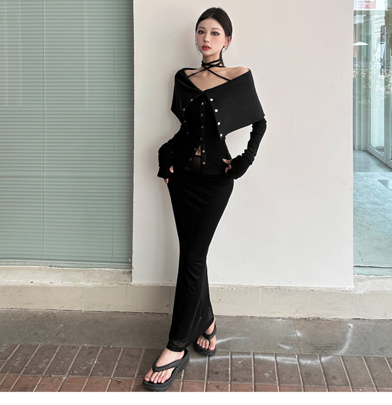 スリム 長袖 バンディング Tシャツ オフショルダー